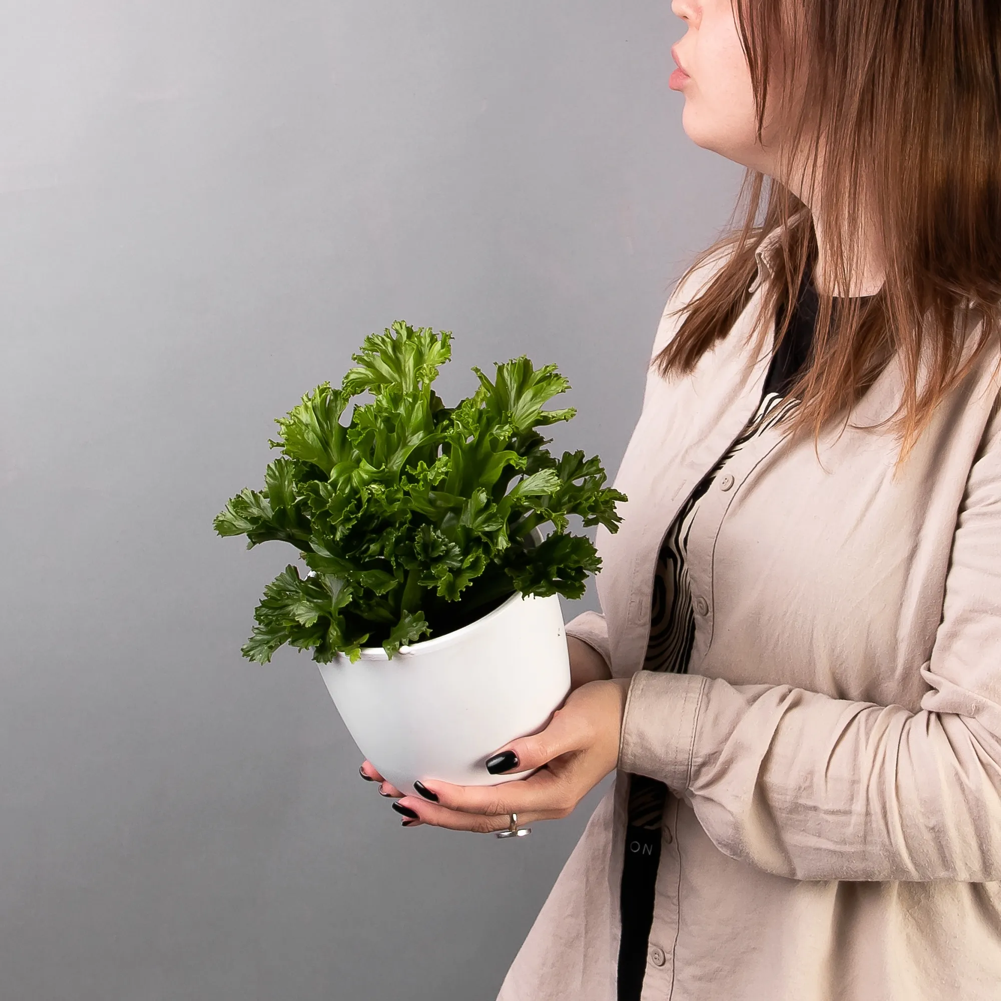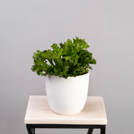 Как правило, растения доставляются в техническом пластиковом горшке от поставщика. Если в наименовании указано «в керамике/цинке», то в эту стоимость входит декоративное кашпо.