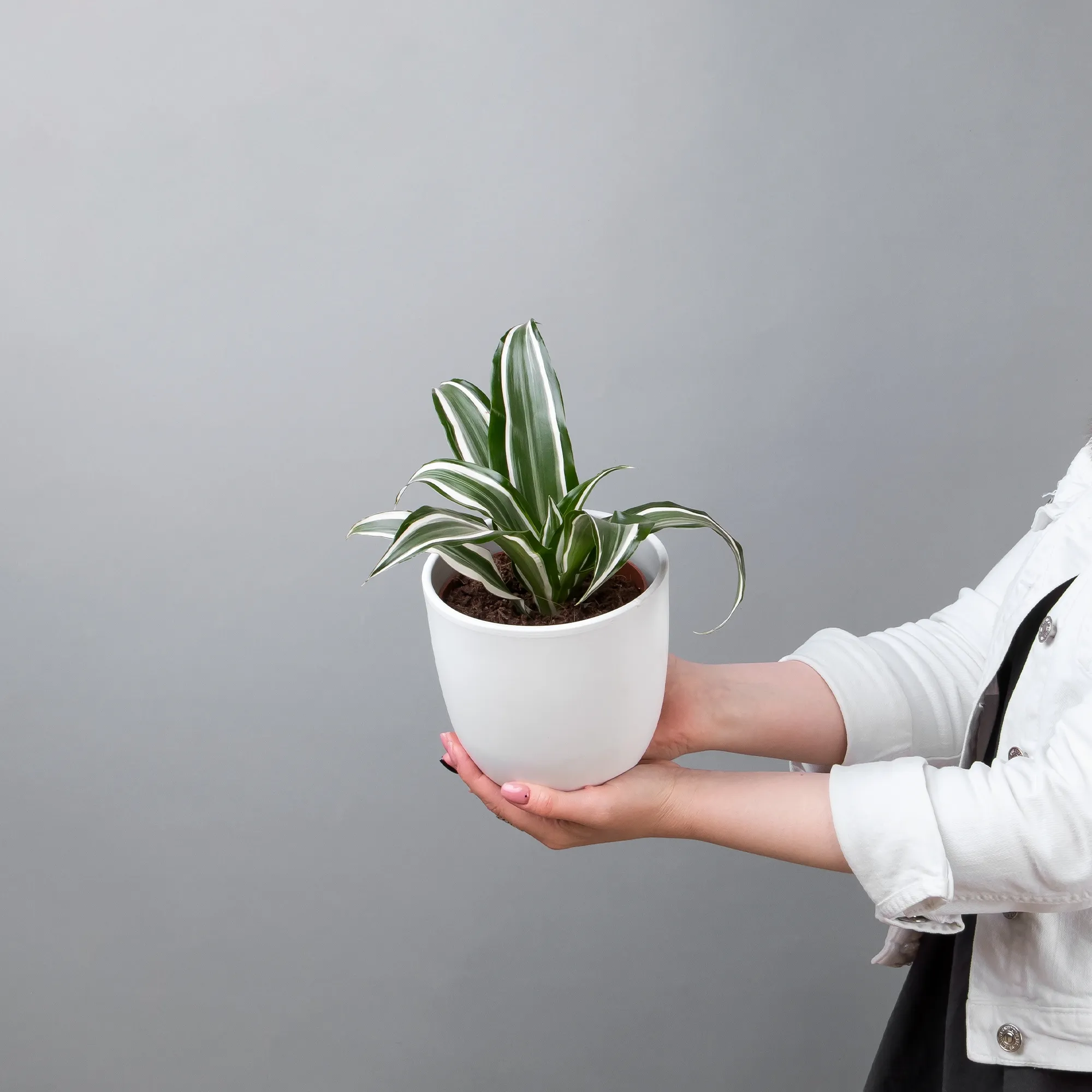 Как правило, растения доставляются в техническом пластиковом горшке от поставщика. Если в наименовании указано «в керамике/цинке», то в эту стоимость входит декоративное кашпо.