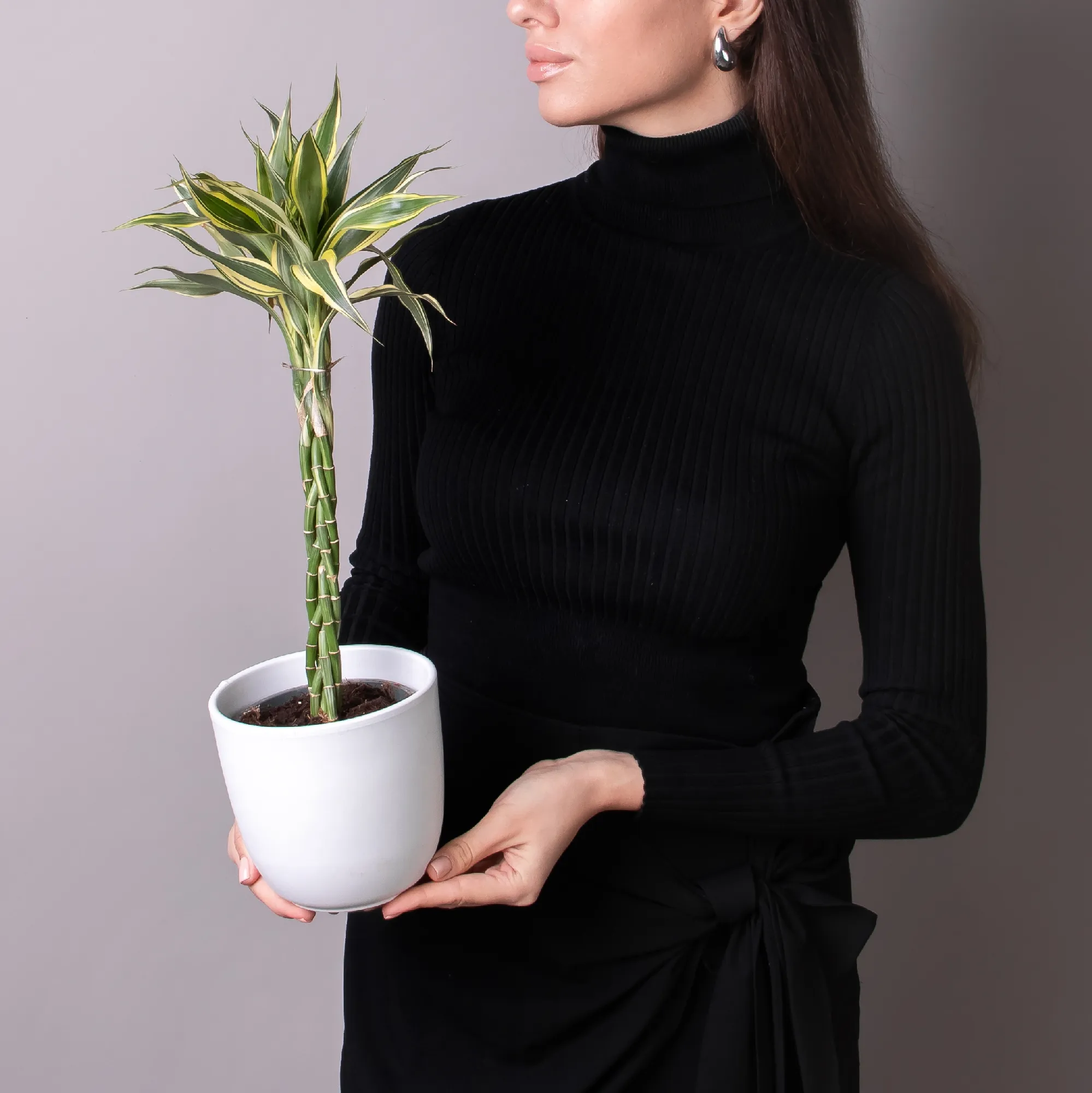 Как правило, растения доставляются в техническом пластиковом горшке от поставщика. Если в наименовании указано «в керамике/цинке», то в эту стоимость входит декоративное кашпо.