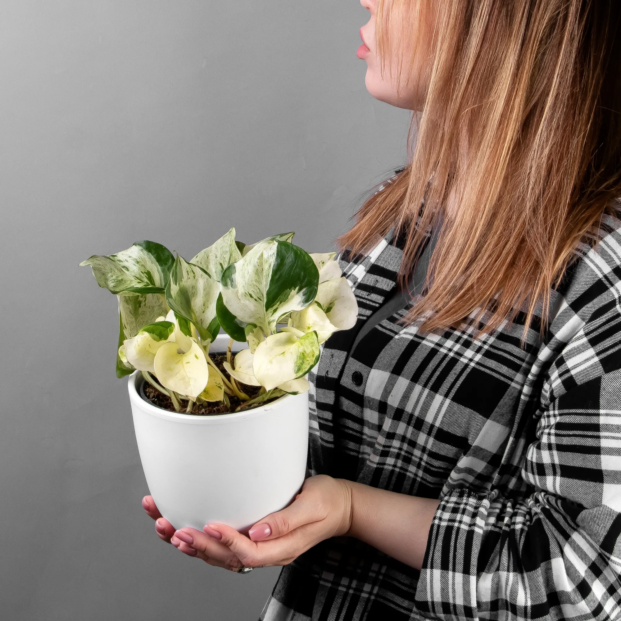 Как правило, растения доставляются в техническом пластиковом горшке от поставщика. Если в наименовании указано «в керамике/цинке», то в эту стоимость входит декоративное кашпо.