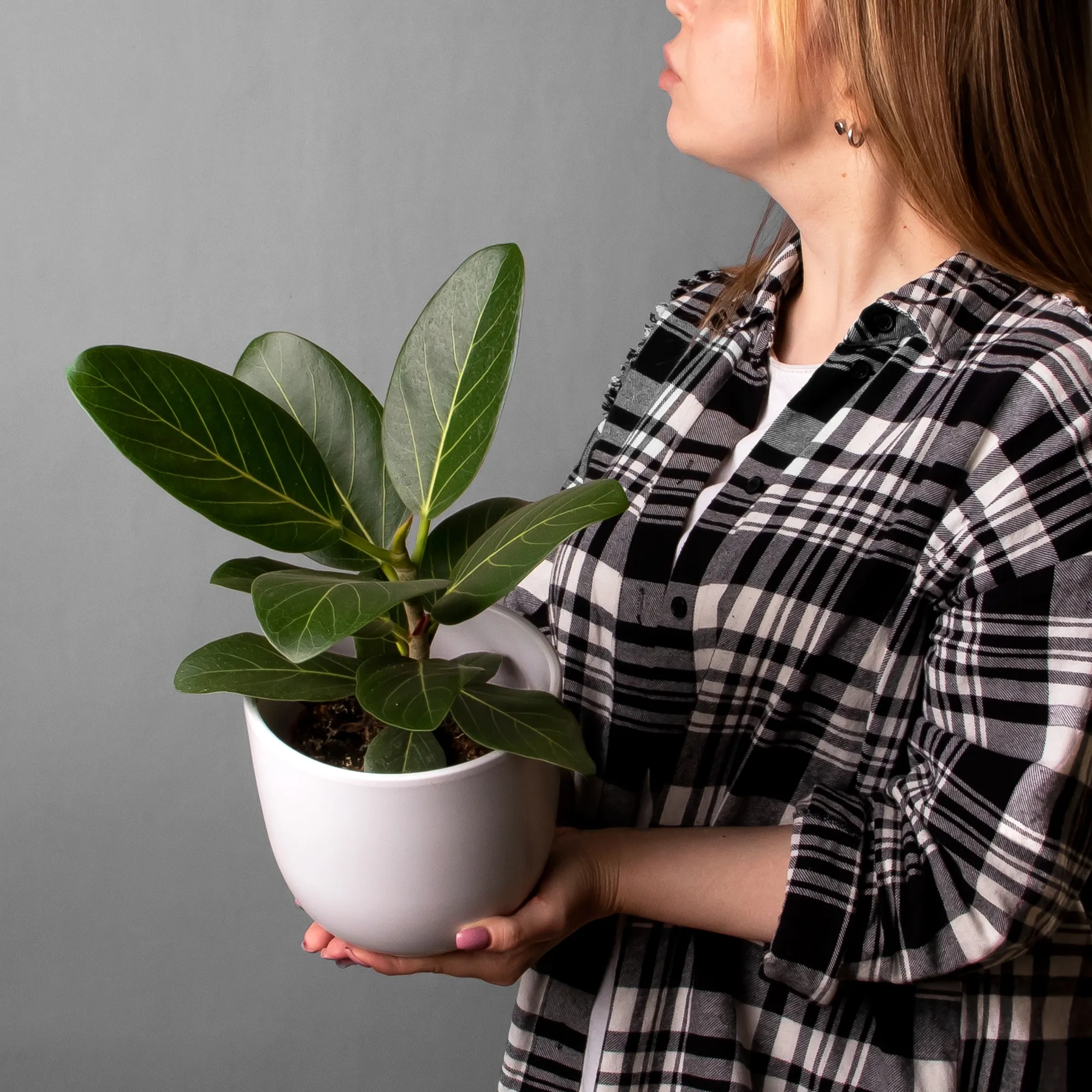 Как правило, растения доставляются в техническом пластиковом горшке от поставщика. Если в наименовании указано «в керамике/цинке», то в эту стоимость входит декоративное кашпо.