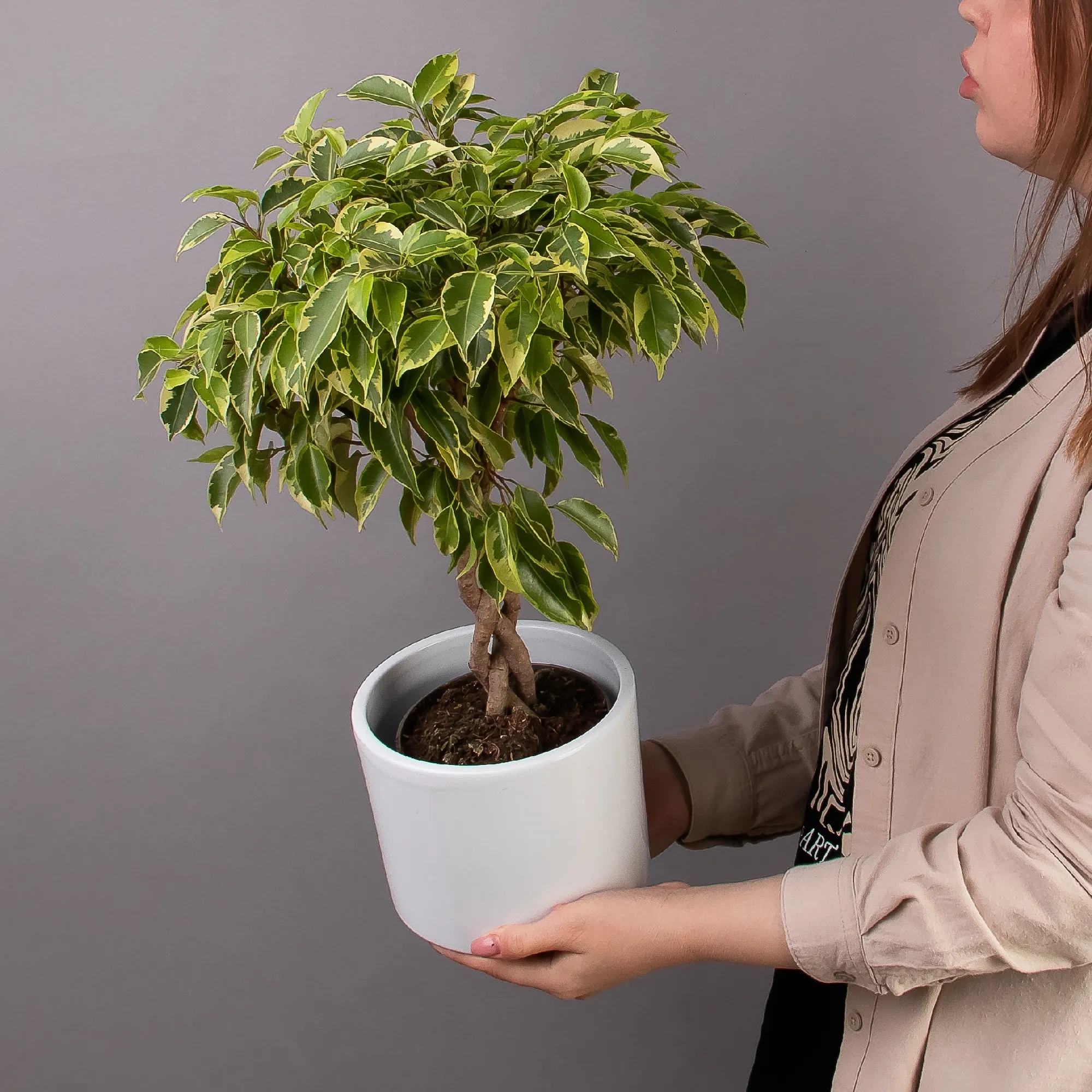 Как правило, растения доставляются в техническом пластиковом горшке от поставщика. Если в наименовании указано «в керамике/цинке», то в эту стоимость входит декоративное кашпо.