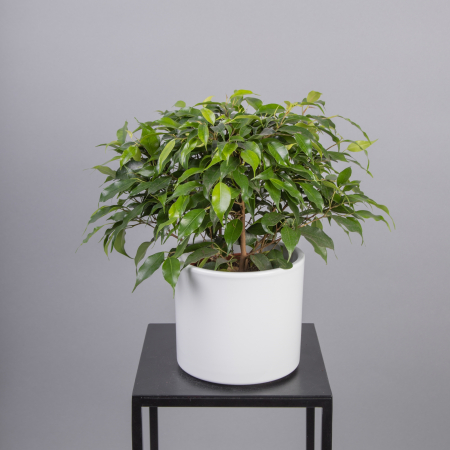 Как правило, растения доставляются в техническом пластиковом горшке от поставщика. Если в наименовании указано «в керамике/цинке», то в эту стоимость входит декоративное кашпо.
