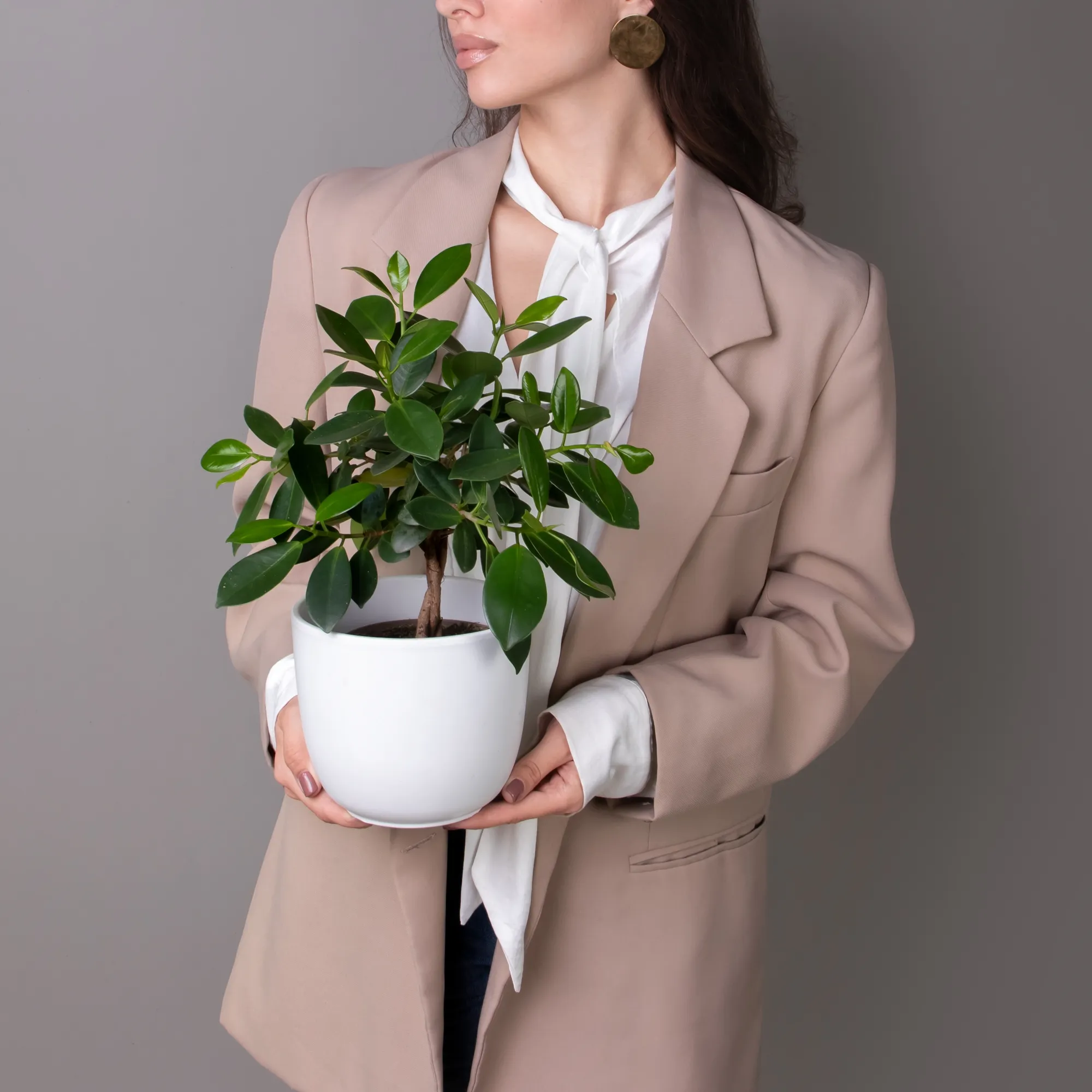Как правило, растения доставляются в техническом пластиковом горшке от поставщика. Если в наименовании указано «в керамике/цинке», то в эту стоимость входит декоративное кашпо.