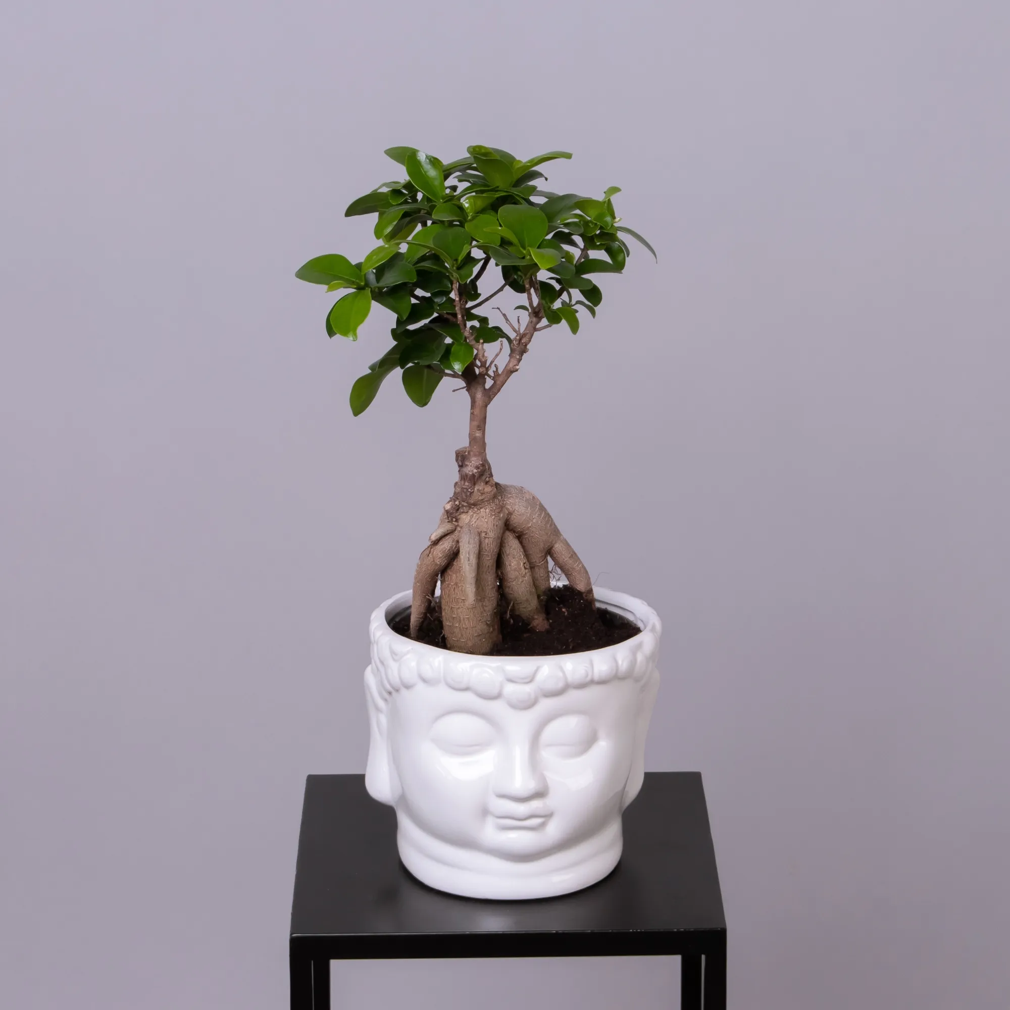 Фикус Микрокарпа Гинсенг в керамике Будда