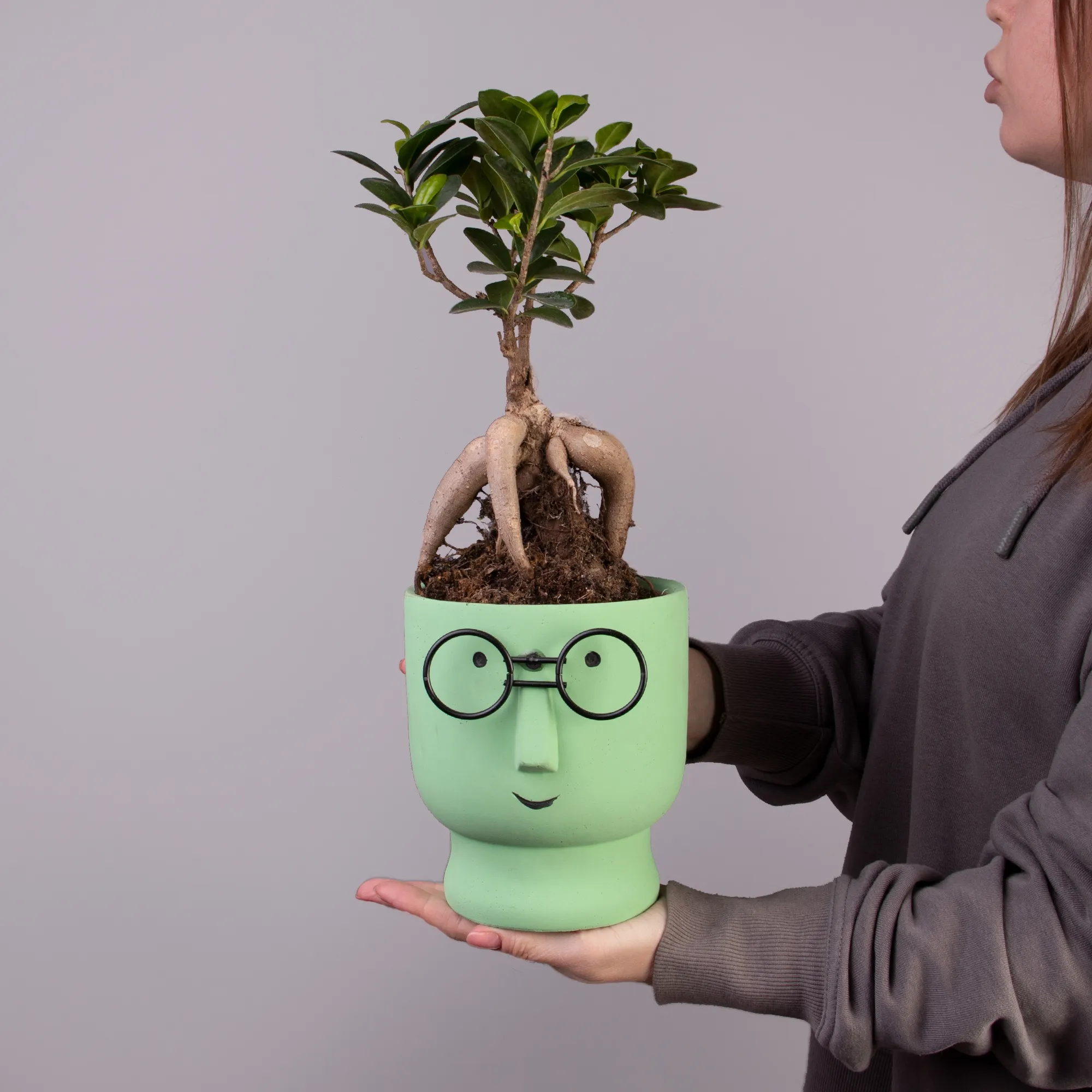 Фикус Микрокарпа Гинсенг в керамике очкарик