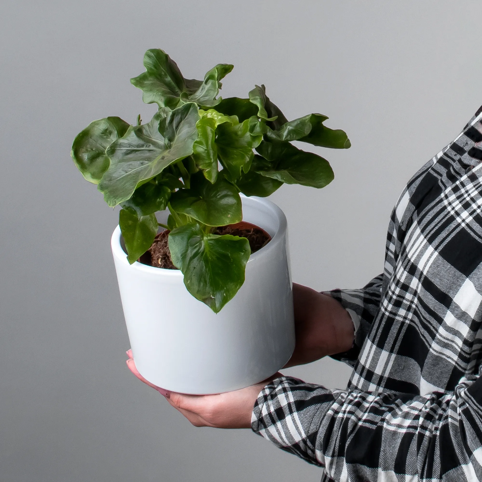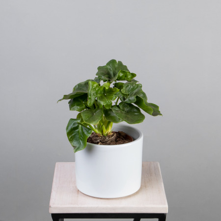 Как правило, растения доставляются в техническом пластиковом горшке от поставщика. Если в наименовании указано «в керамике/цинке», то в эту стоимость входит декоративное кашпо.