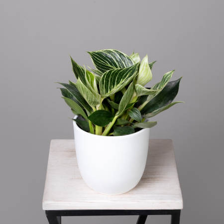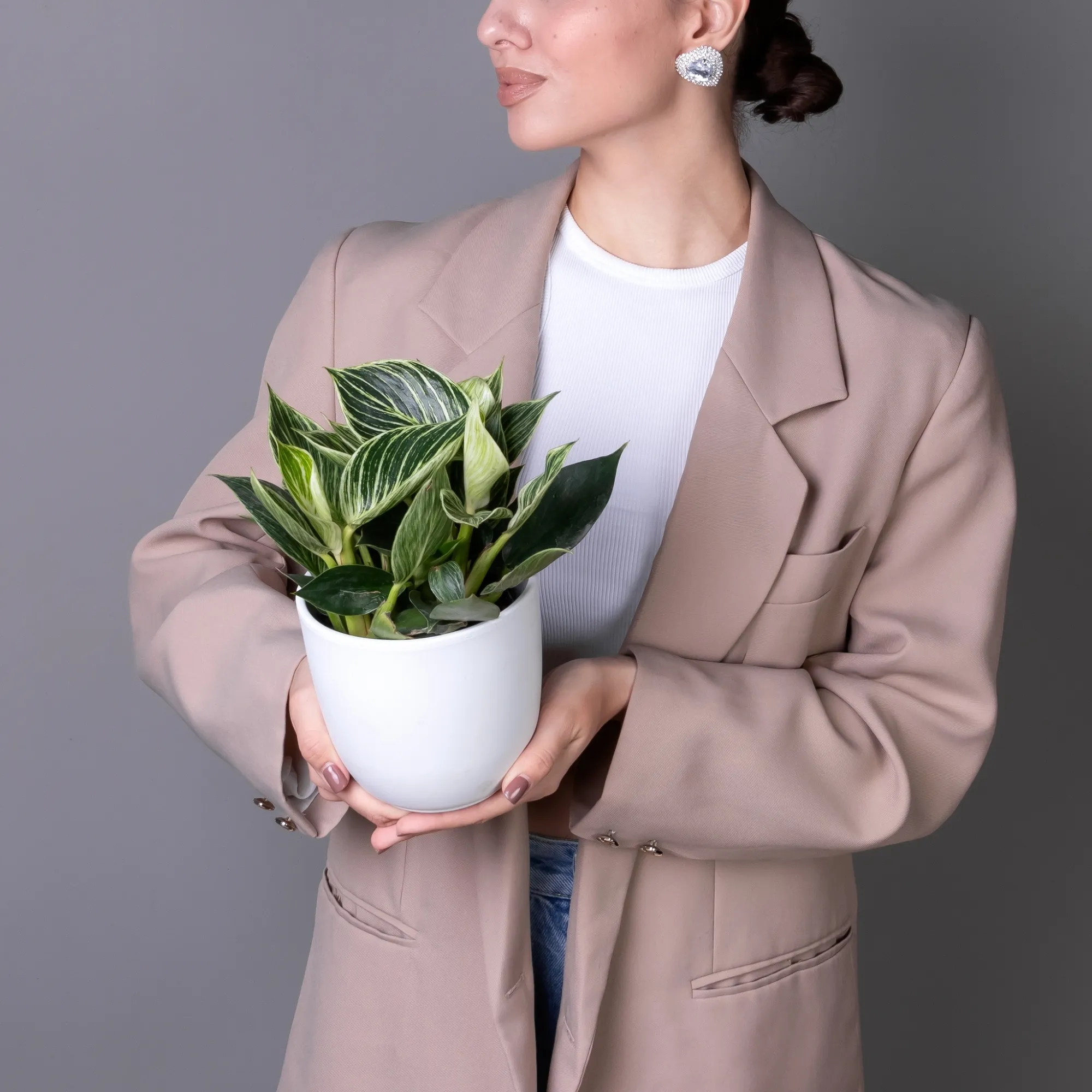 Как правило, растения доставляются в техническом пластиковом горшке от поставщика. Если в наименовании указано «в керамике/цинке», то в эту стоимость входит декоративное кашпо.