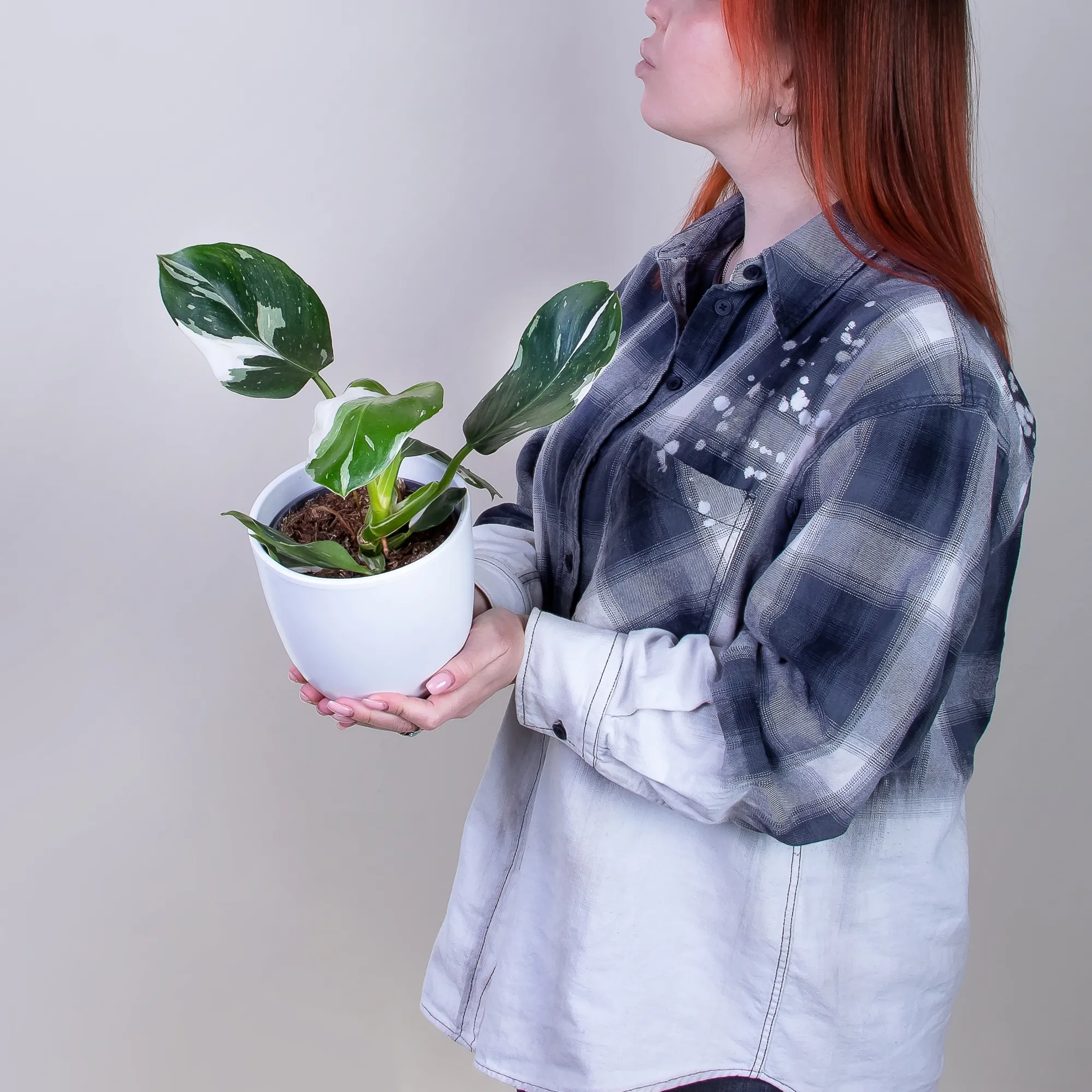 Как правило, растения доставляются в техническом пластиковом горшке от поставщика. Если в наименовании указано «в керамике/цинке», то в эту стоимость входит декоративное кашпо.