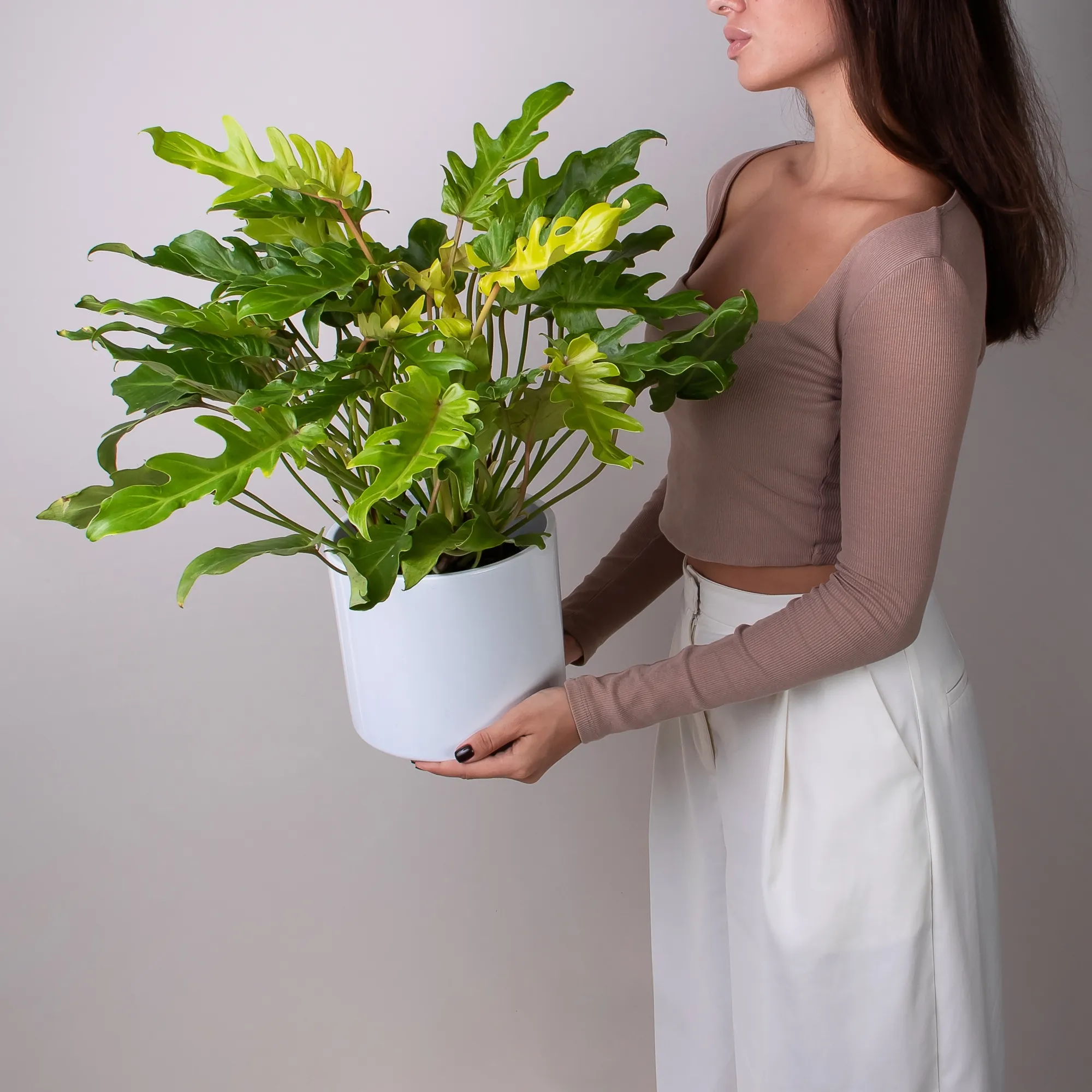 Как правило, растения доставляются в техническом пластиковом горшке от поставщика. Если в наименовании указано «в керамике/цинке», то в эту стоимость входит декоративное кашпо.