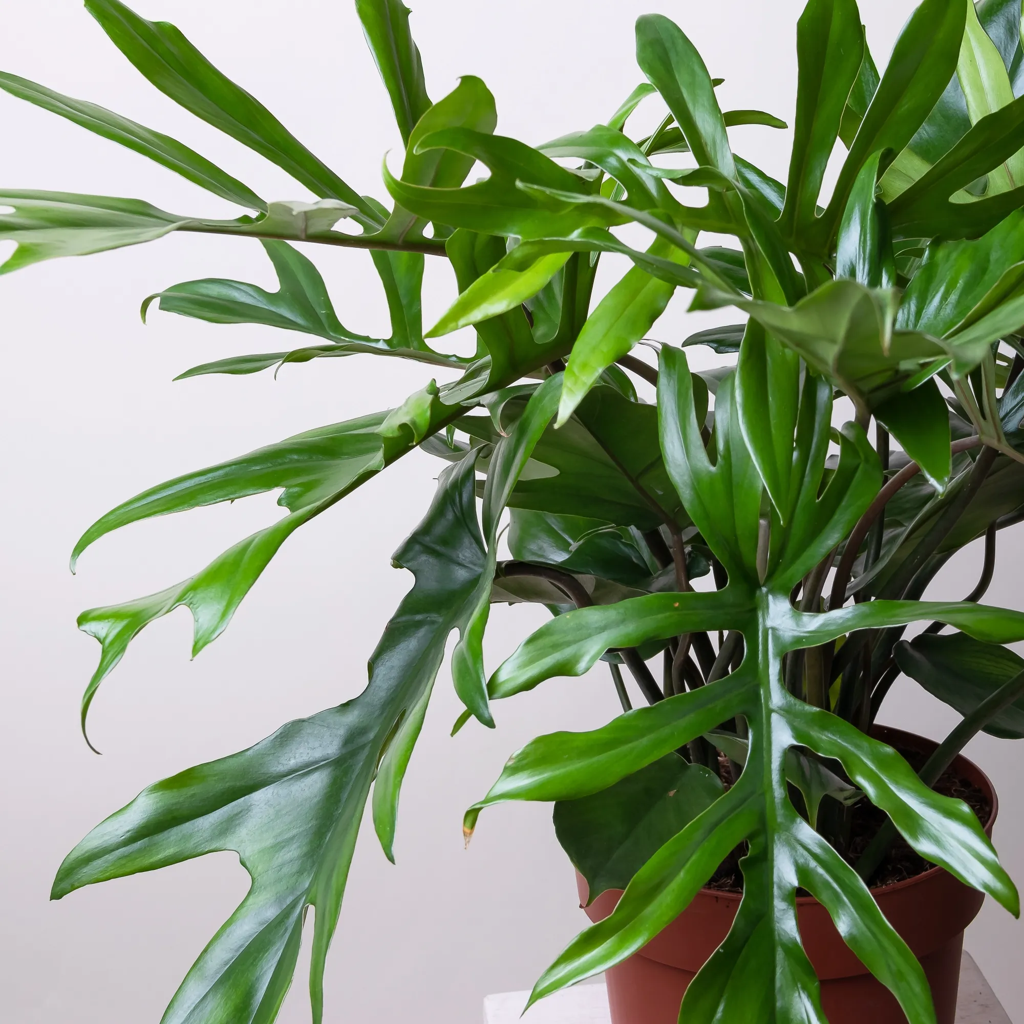 Освещение: большинство видов предпочитает рассеянный свет и приспосабливаются к полутени. Нетребовательны к свету филодендрон красноватый и блестящий. Оптимально северо-восточное окно. Некоторые виды (например, филодендрон золотисто-черный) предпочитают яркий рассеянный свет. Полив: весной и летом поливать 2 раза в неделю водой комнатной температуры, зимой – не чаще 1 раза в 7-8 дней. Почва между поливами должна быть умеренно влажной. Размножение: лазящие филодендроны размножают верхушечным черенком, несущим не менее двух листьев. Черенок обрабатывают корневином и высаживают в смесь торфа и мха. Укореняют при температуре 22-24°С, накрыв контейнер стеклом или полиэтиленом. Можно размножать воздушными отводками. Кустовидные формы можно размножать с помощью побегов, появляющихся у основания куста. Черенок должен иметь точку роста - маленький листочек. Черенки срезают, обрабатывают корневином и укореняют в минитепличке под полиэтиленом. Филодендроны также размножают семенами, которые проращивают в минитепличках, рассыпая семена по поверхности и присыпая тонким слоем почвы. Накрывают контейнер крышкой, которую снимают после прорастания семян. Пересадка: молодые растения каждый год в апреле . Когда растение станет слишком большим, будет достаточно менять верхний слой почвы.