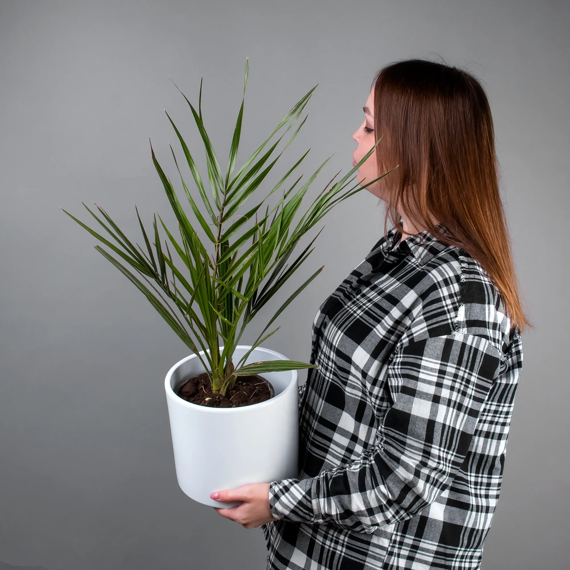 Как правило, растения доставляются в техническом пластиковом горшке от поставщика. Если в наименовании указано «в керамике/цинке», то в эту стоимость входит декоративное кашпо.