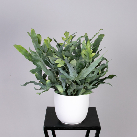 Как правило, растения доставляются в техническом пластиковом горшке от поставщика. Если в наименовании указано «в керамике/цинке», то в эту стоимость входит декоративное кашпо.