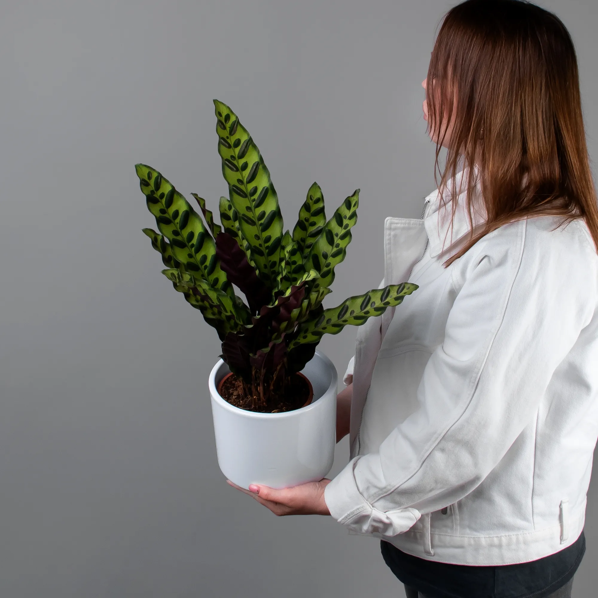 Как правило, растения доставляются в техническом пластиковом горшке от поставщика. Если в наименовании указано «в керамике/цинке», то в эту стоимость входит декоративное кашпо.