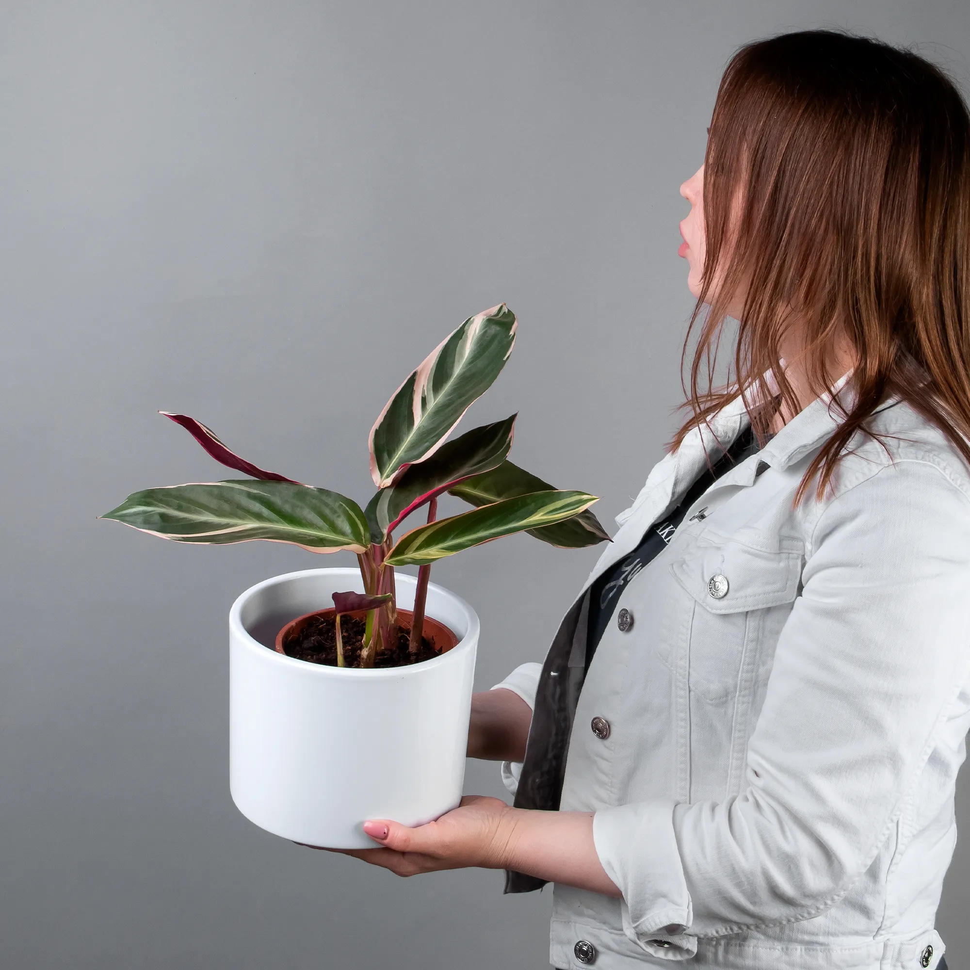 Как правило, растения доставляются в техническом пластиковом горшке от поставщика. Если в наименовании указано «в керамике/цинке», то в эту стоимость входит декоративное кашпо.