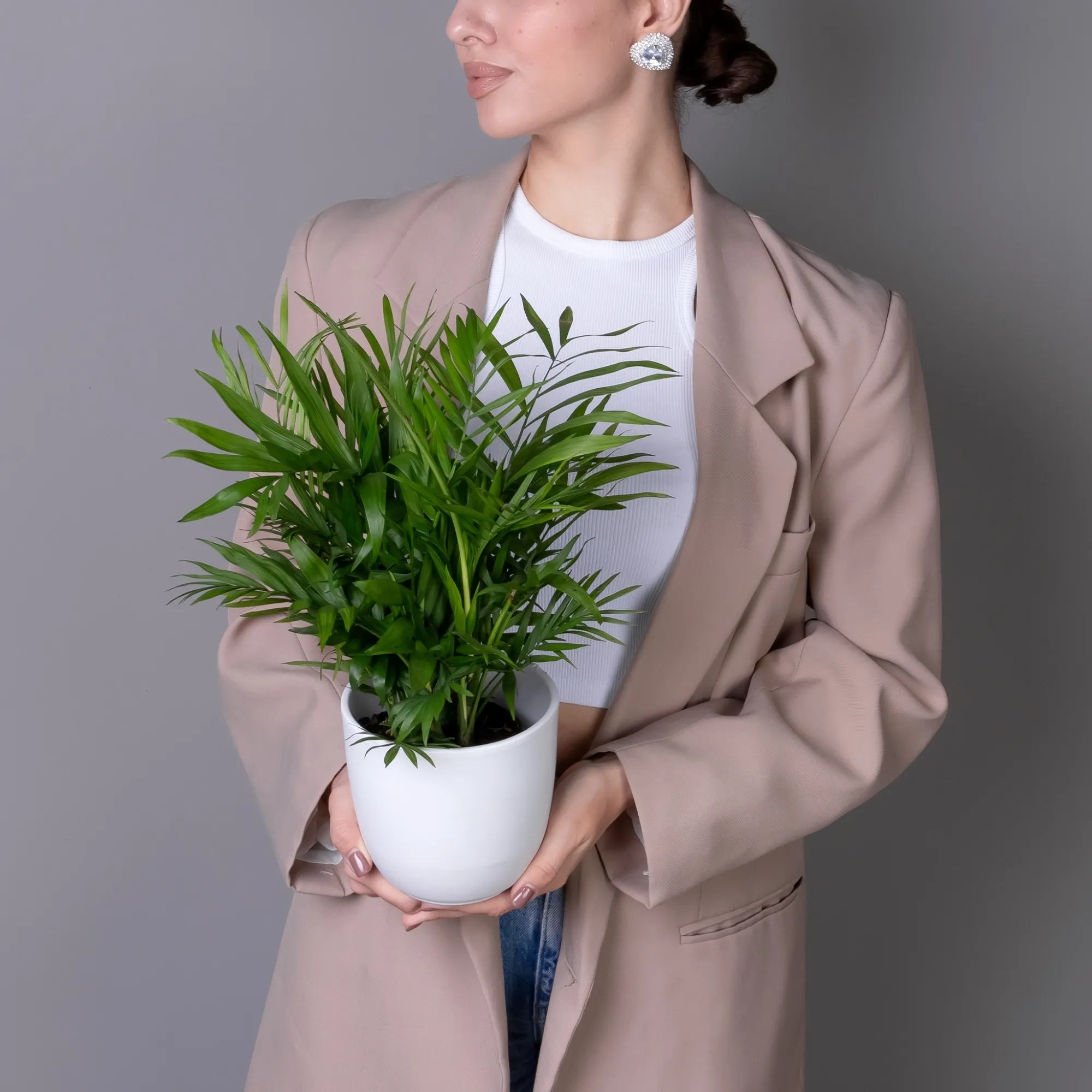 Как правило, растения доставляются в техническом пластиковом горшке от поставщика. Если в наименовании указано «в керамике/цинке», то в эту стоимость входит декоративное кашпо.