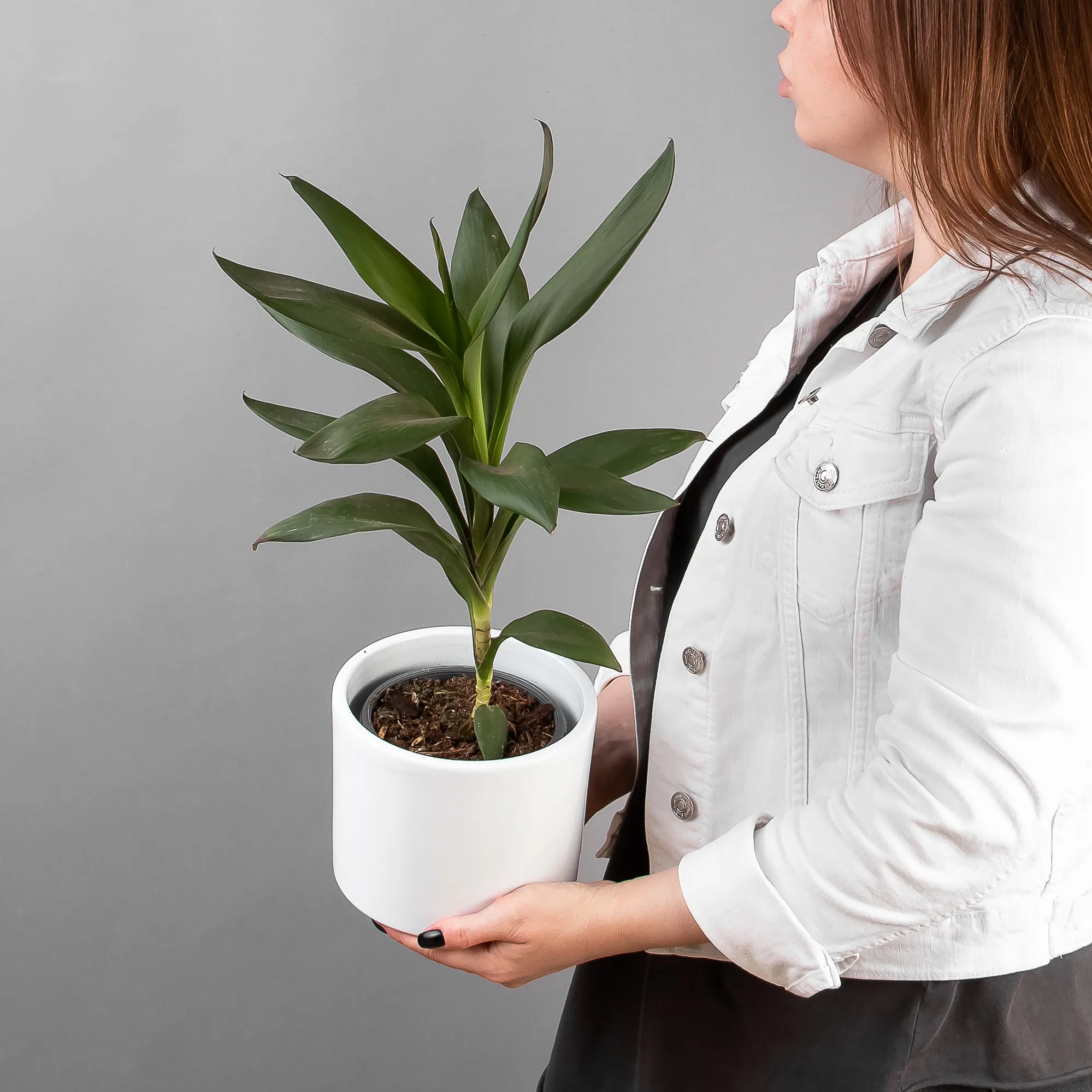 Как правило, растения доставляются в техническом пластиковом горшке от поставщика. Если в наименовании указано «в керамике/цинке», то в эту стоимость входит декоративное кашпо.