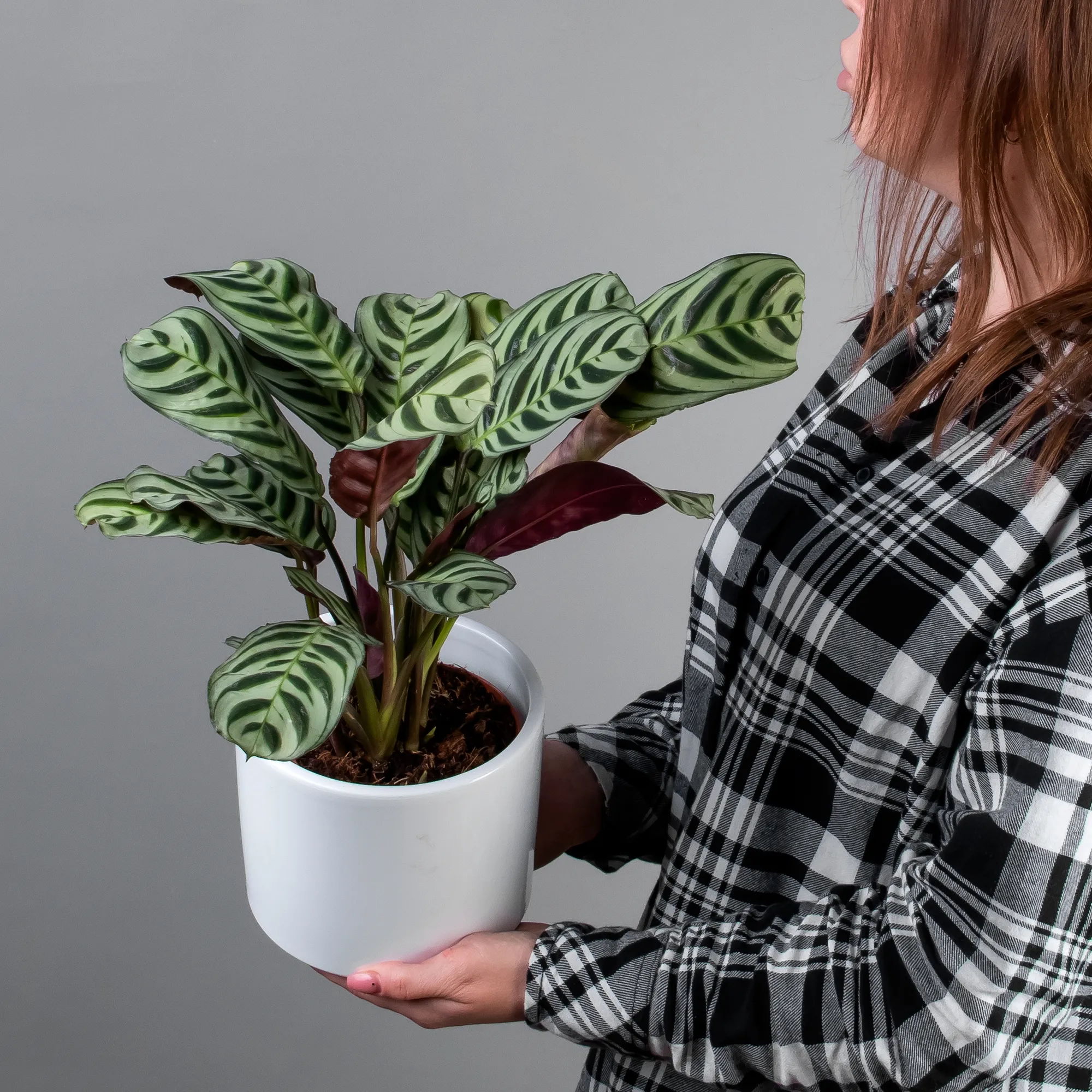 Как правило, растения доставляются в техническом пластиковом горшке от поставщика. Если в наименовании указано «в керамике/цинке», то в эту стоимость входит декоративное кашпо.