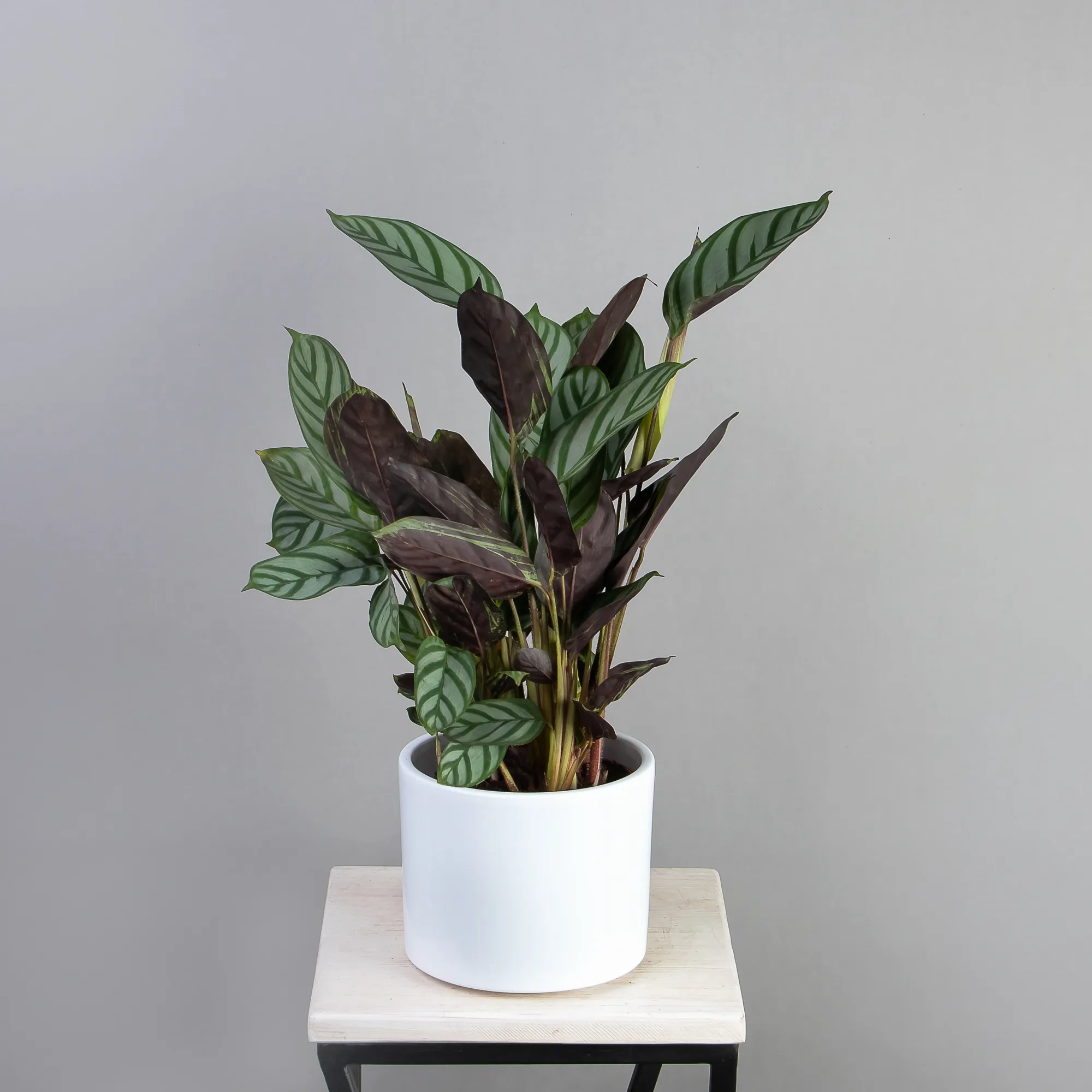 Как правило, растения доставляются в техническом пластиковом горшке от поставщика. Если в наименовании указано «в керамике/цинке», то в эту стоимость входит декоративное кашпо.