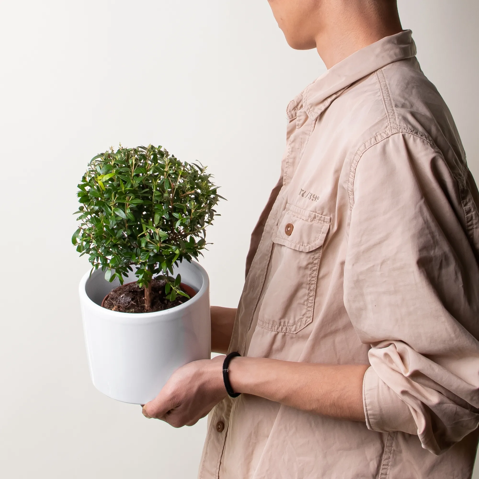 Как правило, растения доставляются в техническом пластиковом горшке от поставщика. Если в наименовании указано «в керамике/цинке», то в эту стоимость входит декоративное кашпо.