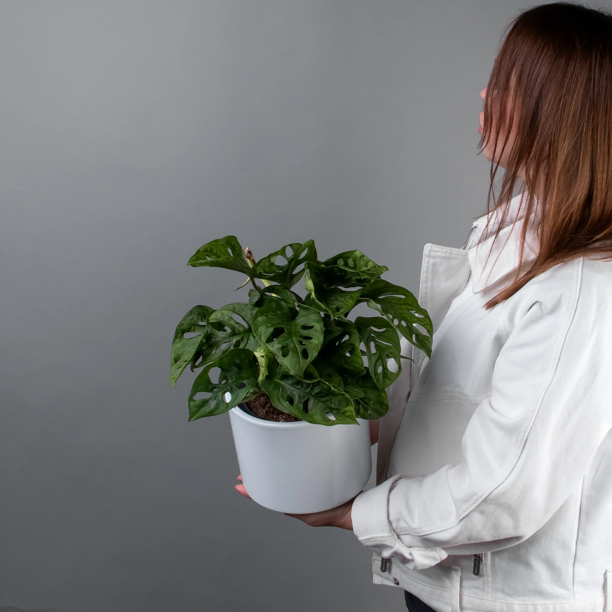 Как правило, растения доставляются в техническом пластиковом горшке от поставщика. Если в наименовании указано «в керамике/цинке», то в эту стоимость входит декоративное кашпо.