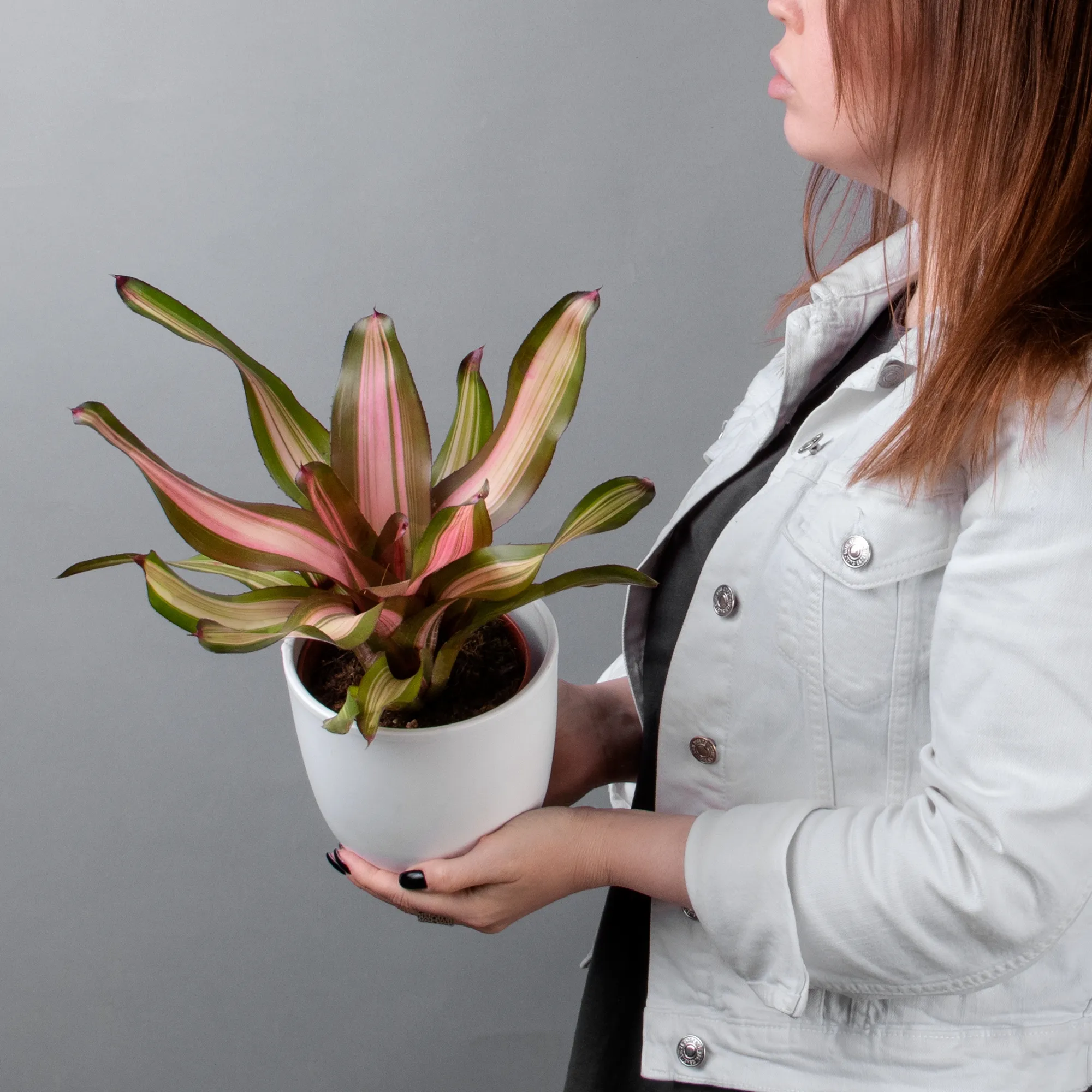 Как правило, растения доставляются в техническом пластиковом горшке от поставщика. Если в наименовании указано «в керамике/цинке», то в эту стоимость входит декоративное кашпо.