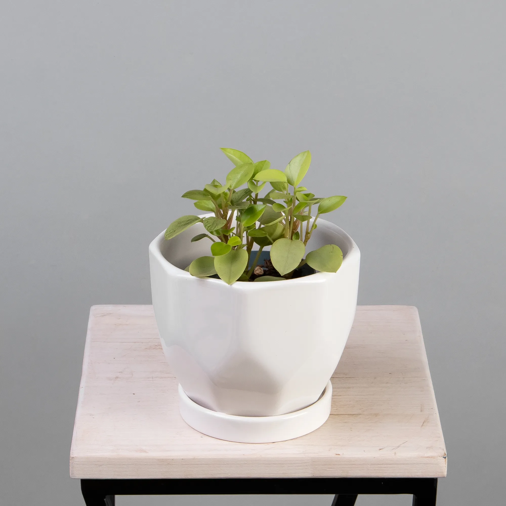 Как правило, растения доставляются в техническом пластиковом горшке от поставщика. Если в наименовании указано «в керамике/цинке», то в эту стоимость входит декоративное кашпо.