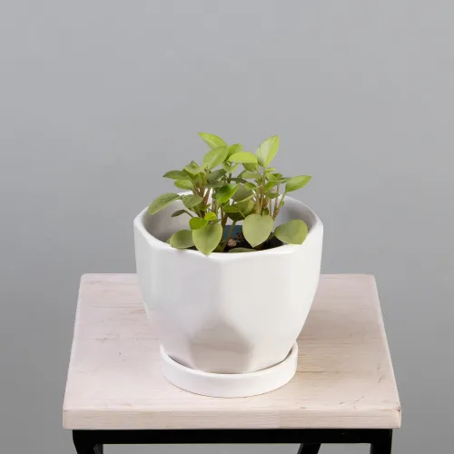Как правило, растения доставляются в техническом пластиковом горшке от поставщика. Если в наименовании указано «в керамике/цинке», то в эту стоимость входит декоративное кашпо.