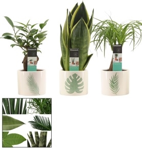 Как правило, растения доставляются в техническом пластиковом горшке от поставщика. Если в наименовании указано «в керамике/цинке», то в эту стоимость входит декоративное кашпо.