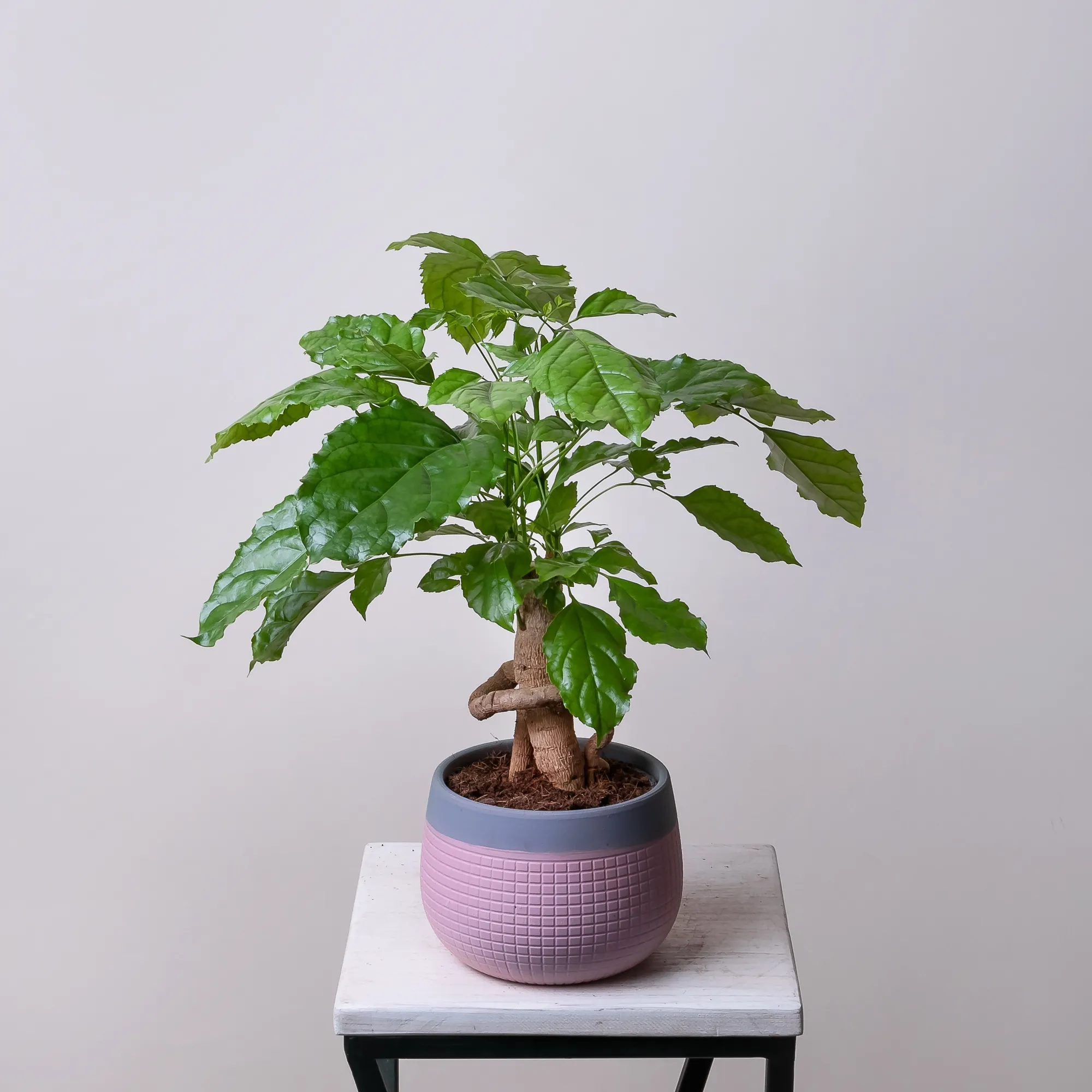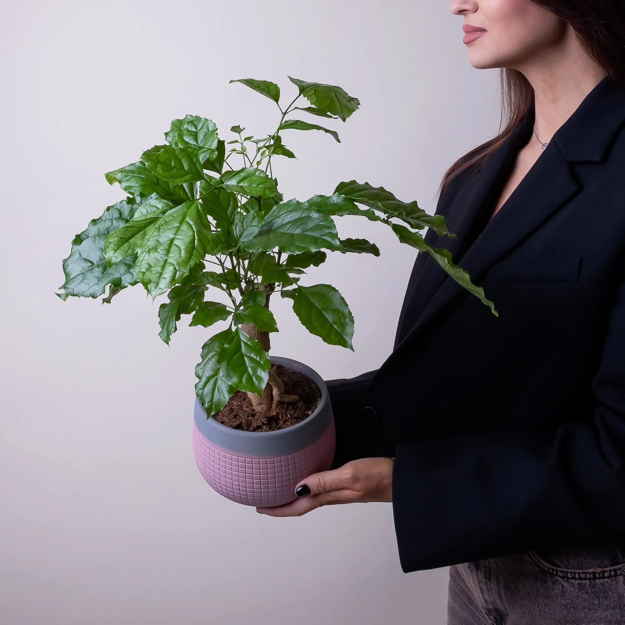 Как правило, растения доставляются в техническом пластиковом горшке от поставщика. Если в наименовании указано «в керамике/цинке», то в эту стоимость входит декоративное кашпо.