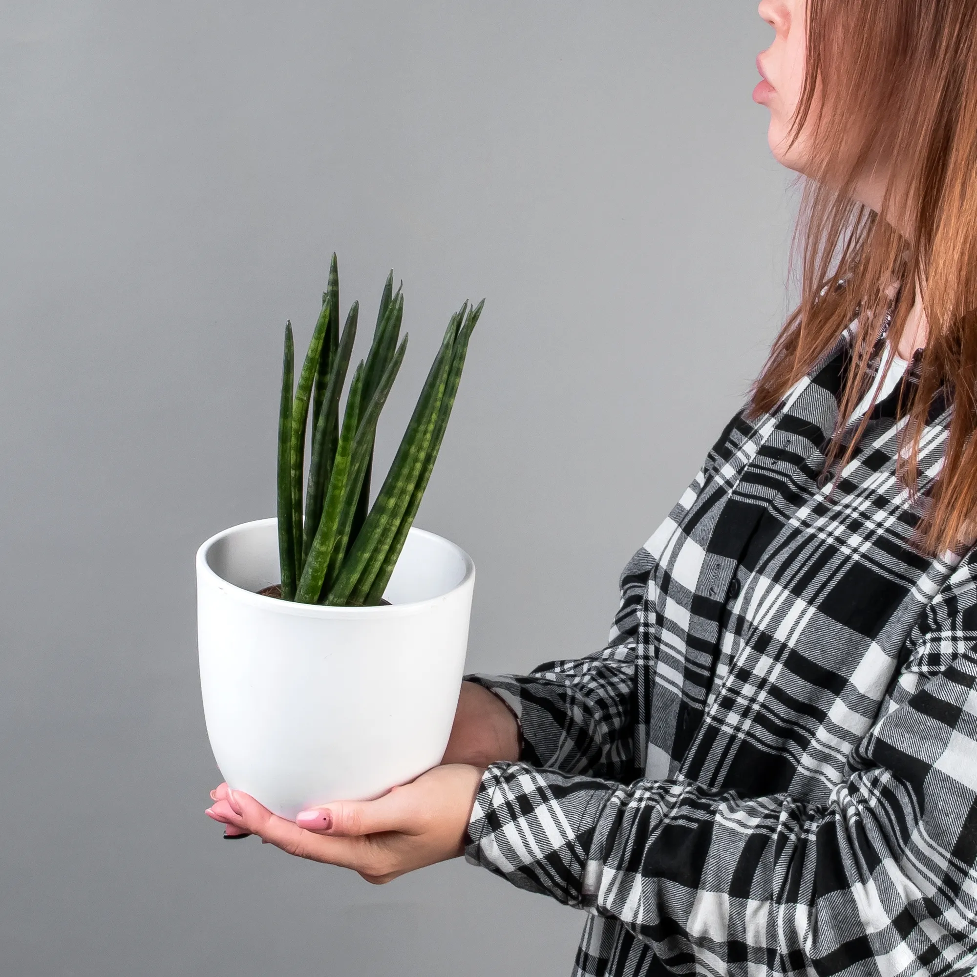Как правило, растения доставляются в техническом пластиковом горшке от поставщика. Если в наименовании указано «в керамике/цинке», то в эту стоимость входит декоративное кашпо.