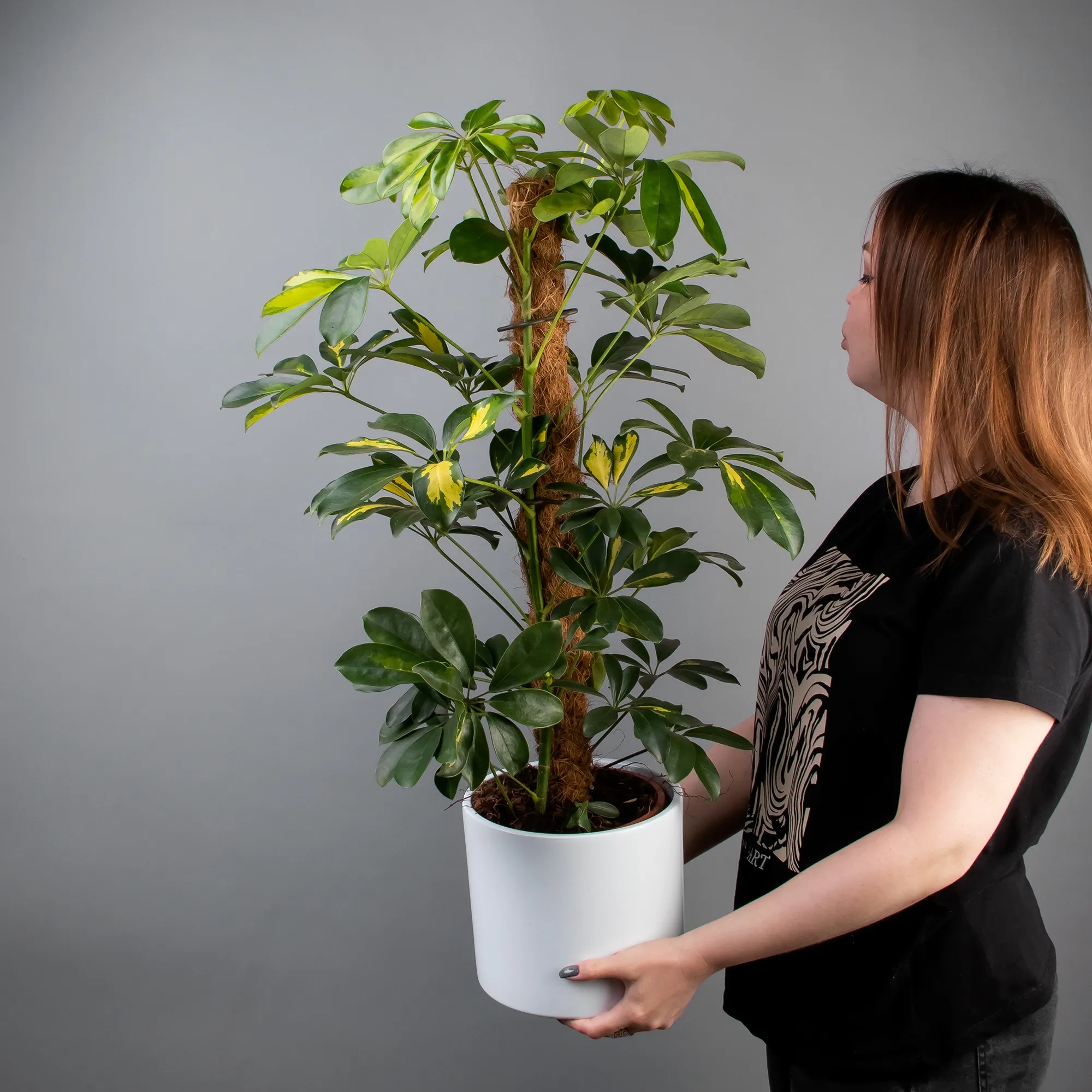 Как правило, растения доставляются в техническом пластиковом горшке от поставщика. Если в наименовании указано «в керамике/цинке», то в эту стоимость входит декоративное кашпо.