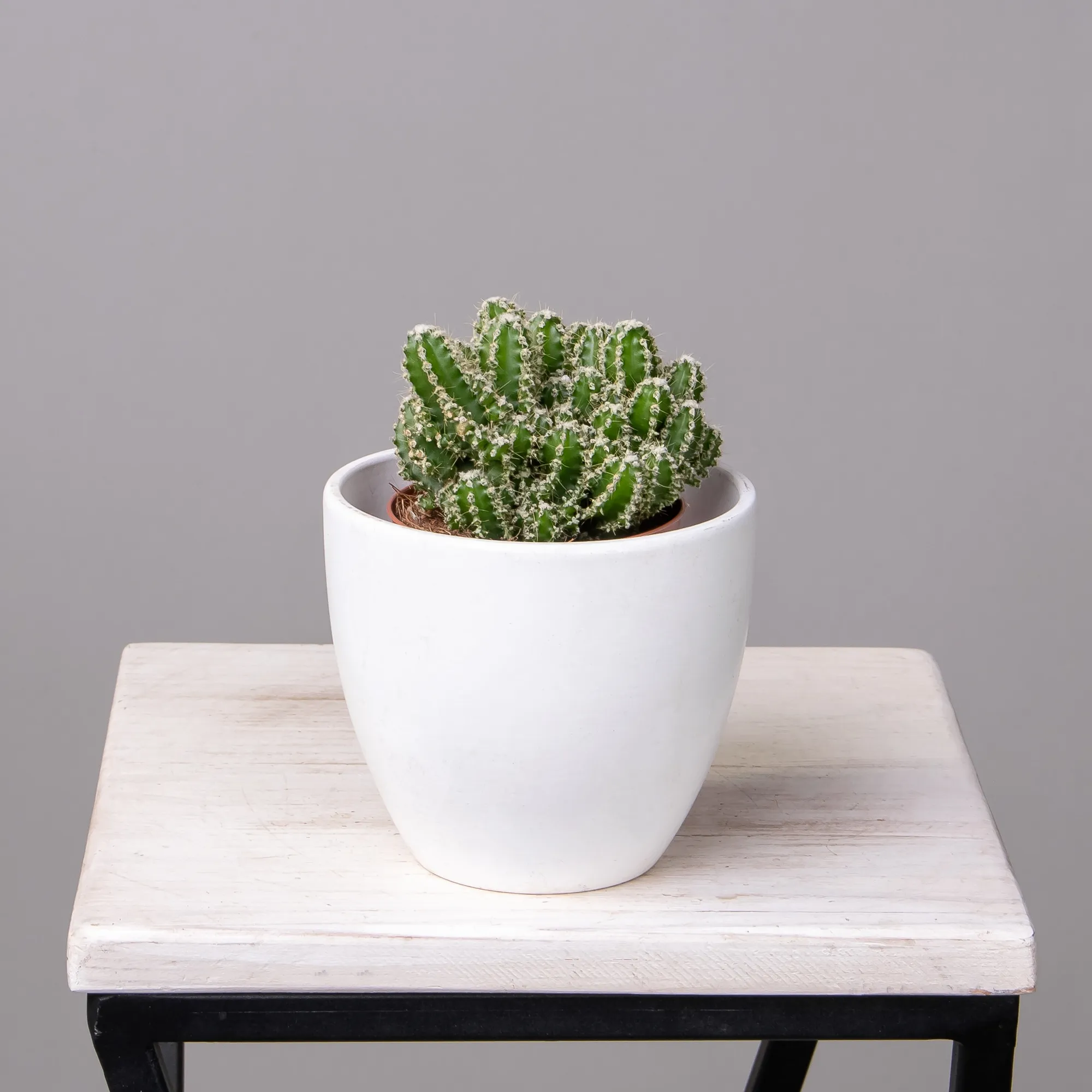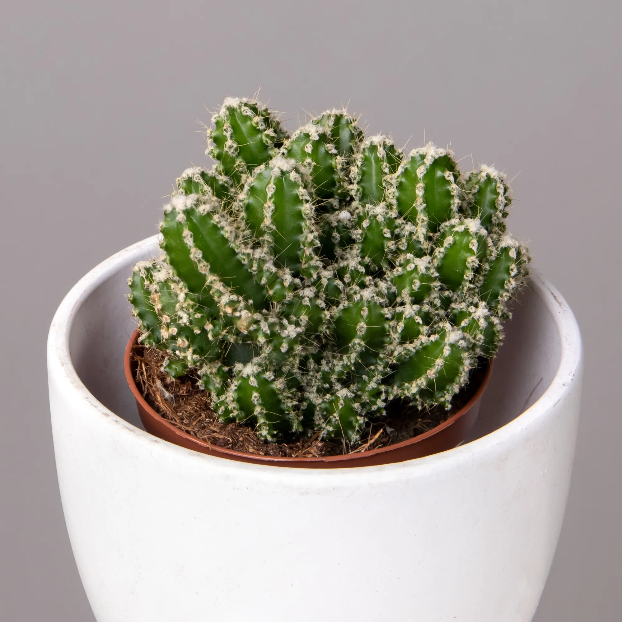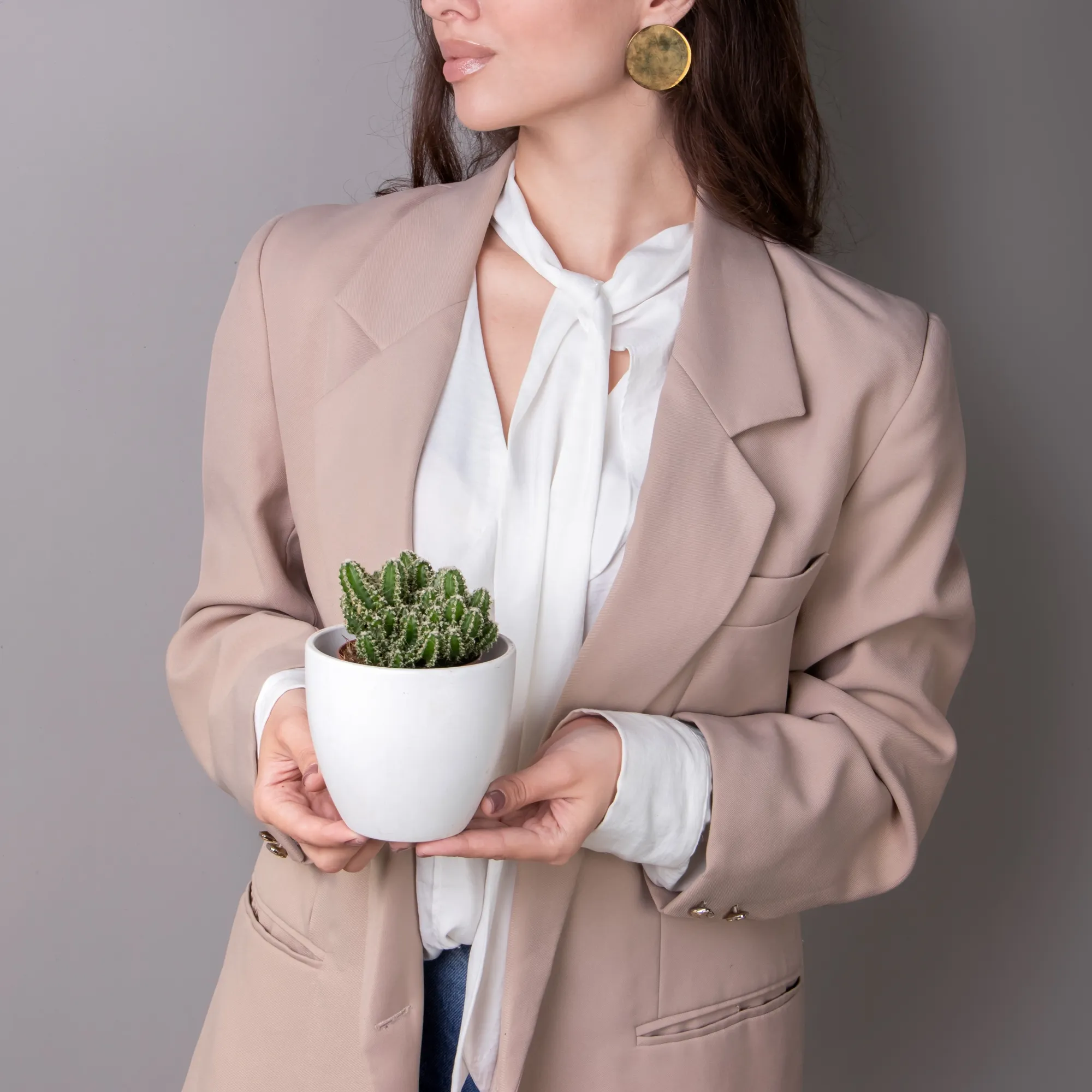Как правило, растения доставляются в техническом пластиковом горшке от поставщика. Если в наименовании указано «в керамике/цинке», то в эту стоимость входит декоративное кашпо.