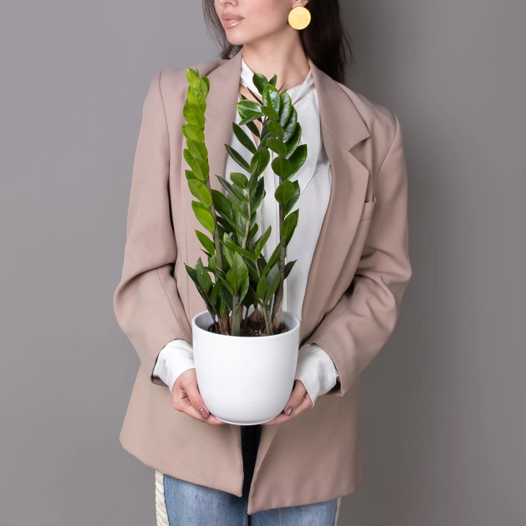 Как правило, растения доставляются в техническом пластиковом горшке от поставщика. Если в наименовании указано «в керамике/цинке», то в эту стоимость входит декоративное кашпо.