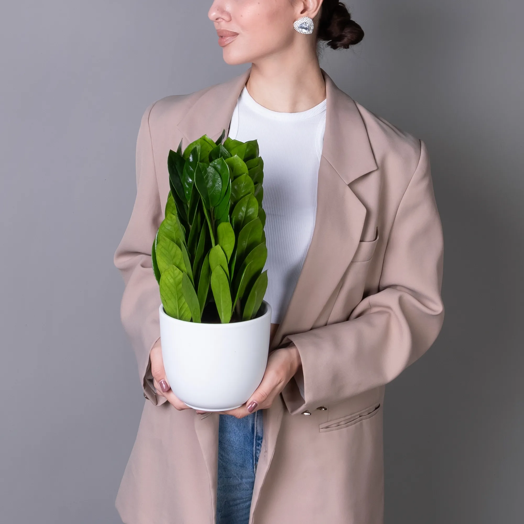 Как правило, растения доставляются в техническом пластиковом горшке от поставщика. Если в наименовании указано «в керамике/цинке», то в эту стоимость входит декоративное кашпо.