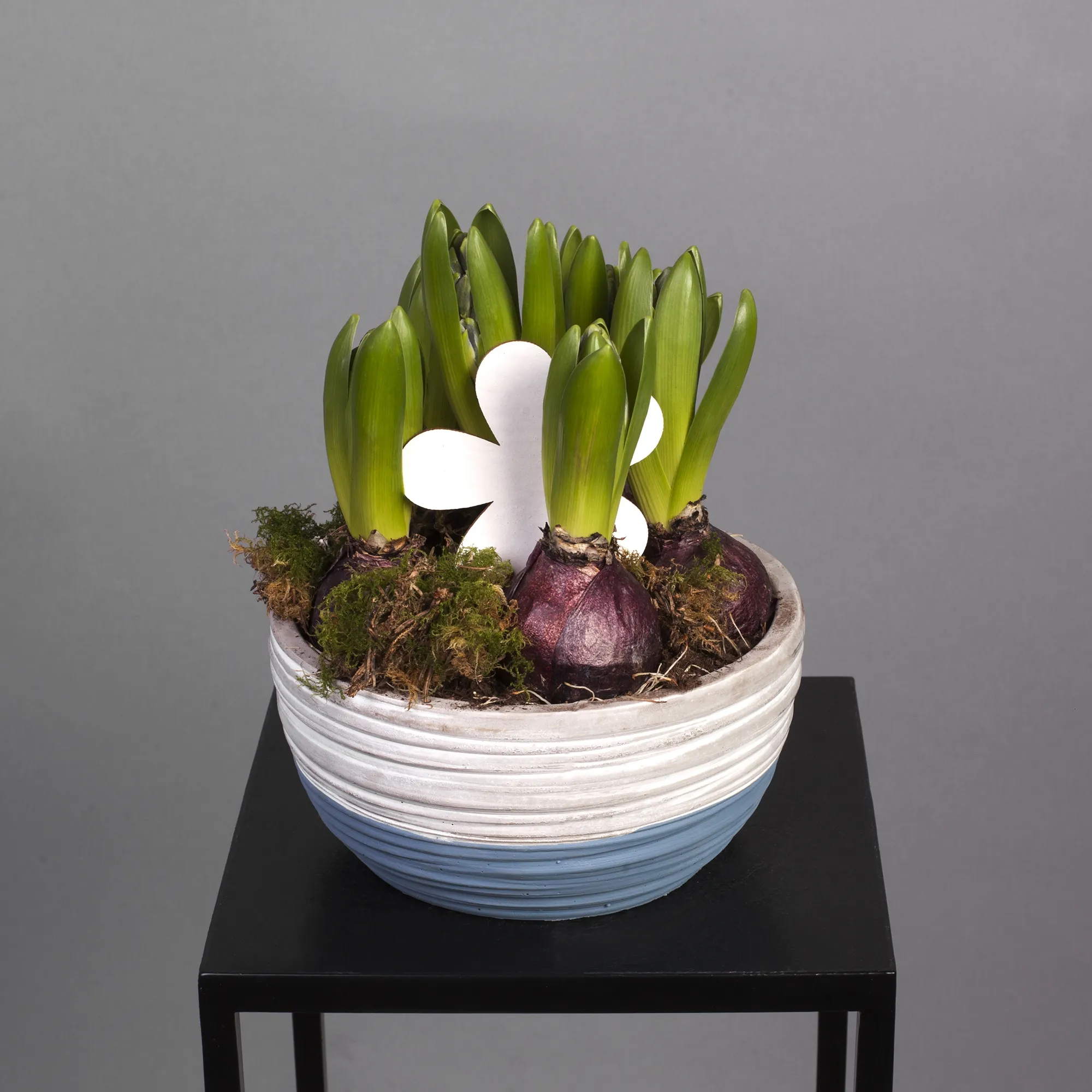 Как правило, растения доставляются в техническом пластиковом горшке от поставщика. Если в наименовании указано «в керамике/цинке», то в эту стоимость входит декоративное кашпо.
