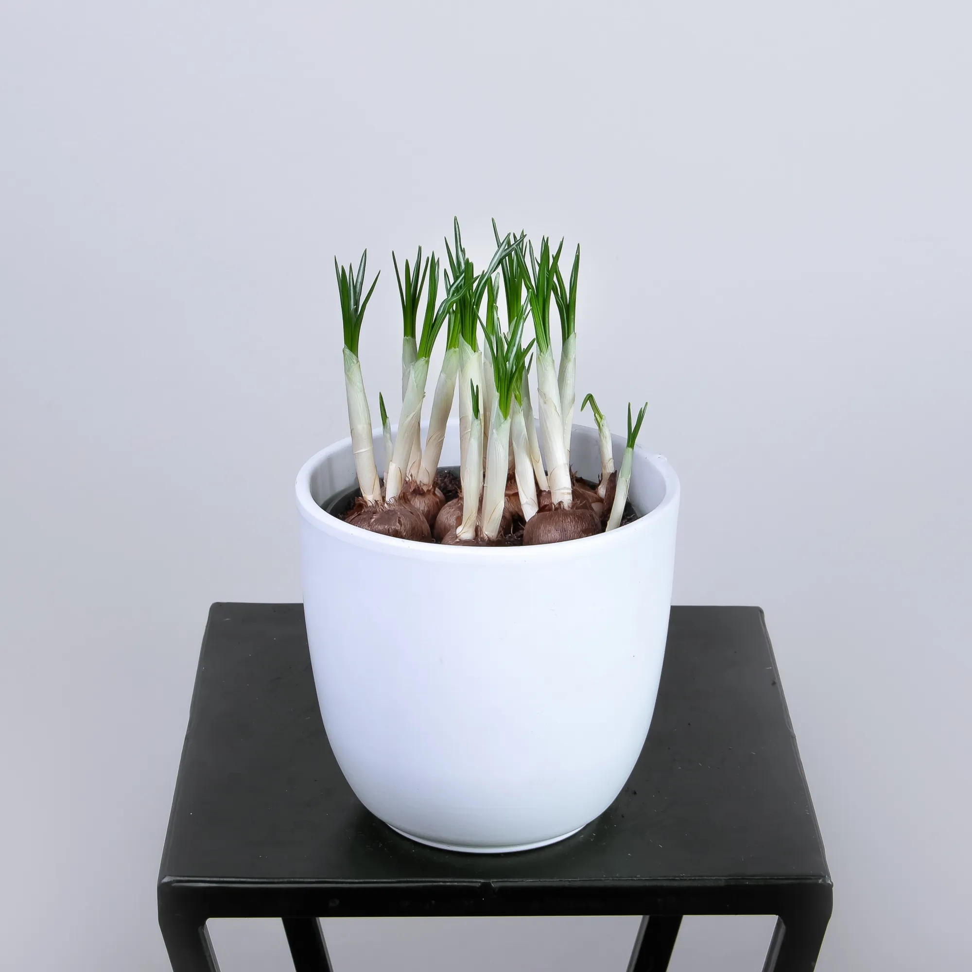 Как правило, растения доставляются в техническом пластиковом горшке от поставщика. Если в наименовании указано «в керамике/цинке», то в эту стоимость входит декоративное кашпо.