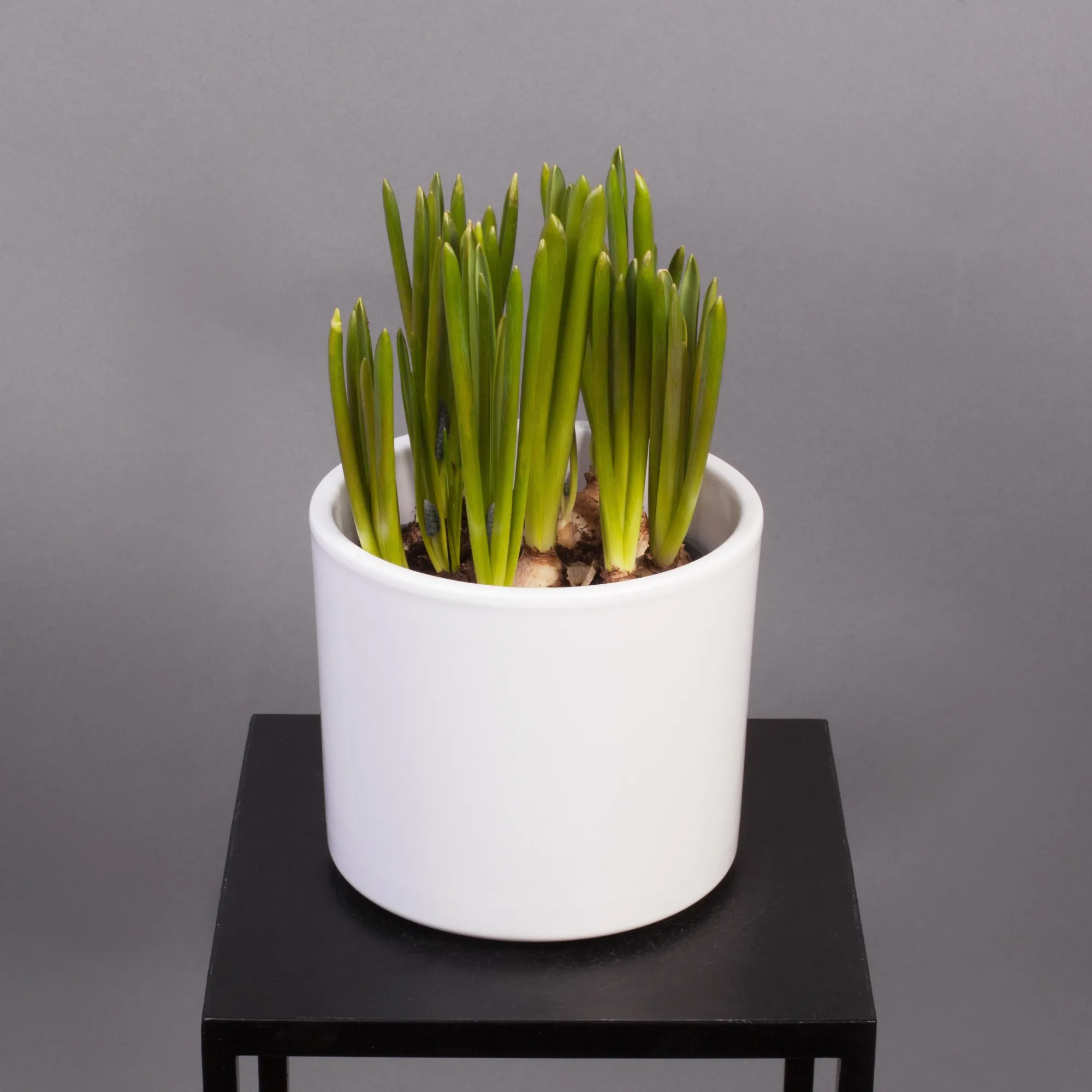 Освещение: яркий солнечный свет. Полив: умеренный. Следует орошать его по мере высыхания верхнего слоя почвы. Вода для полива должна быть мягкой, без содержания хлора - как и для большинства комнатных растений, воду следует отстаивать. Температура воздуха: Мускари не переносит высоких температур. Нужно найти для него прохладное - а зимой можно даже холодное (10 С°) - помещение. В крайнем случае, содержать при комнатной температуре, поддерживая хорошую влажность вокруг растения. Влажность воздуха: Высокая. Пересадка. Цветок не любит частой пересадки. Делать это нужно только, когда луковицам станет совсем тесно. Растение очень легко и быстро делится. В связи с этим, луковички нужно высаживать на некотором отдалении друг от друга. Выгонка мускари в домашних условиях: