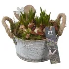 Мускари в белом круглом цинковом кашпо PTMB6164