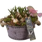 Мускари в фиолетовом круглом цинковом кашпо PTMB6161