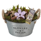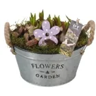 Мускари в круглом цинковом кашпо с птичкой Ptmb1287
