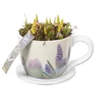 Как правило, растения доставляются в техническом пластиковом горшке от поставщика. Если в наименовании указано «в керамике/цинке», то в эту стоимость входит декоративное кашпо.