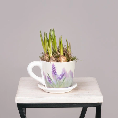 Как правило, растения доставляются в техническом пластиковом горшке от поставщика. Если в наименовании указано «в керамике/цинке», то в эту стоимость входит декоративное кашпо.