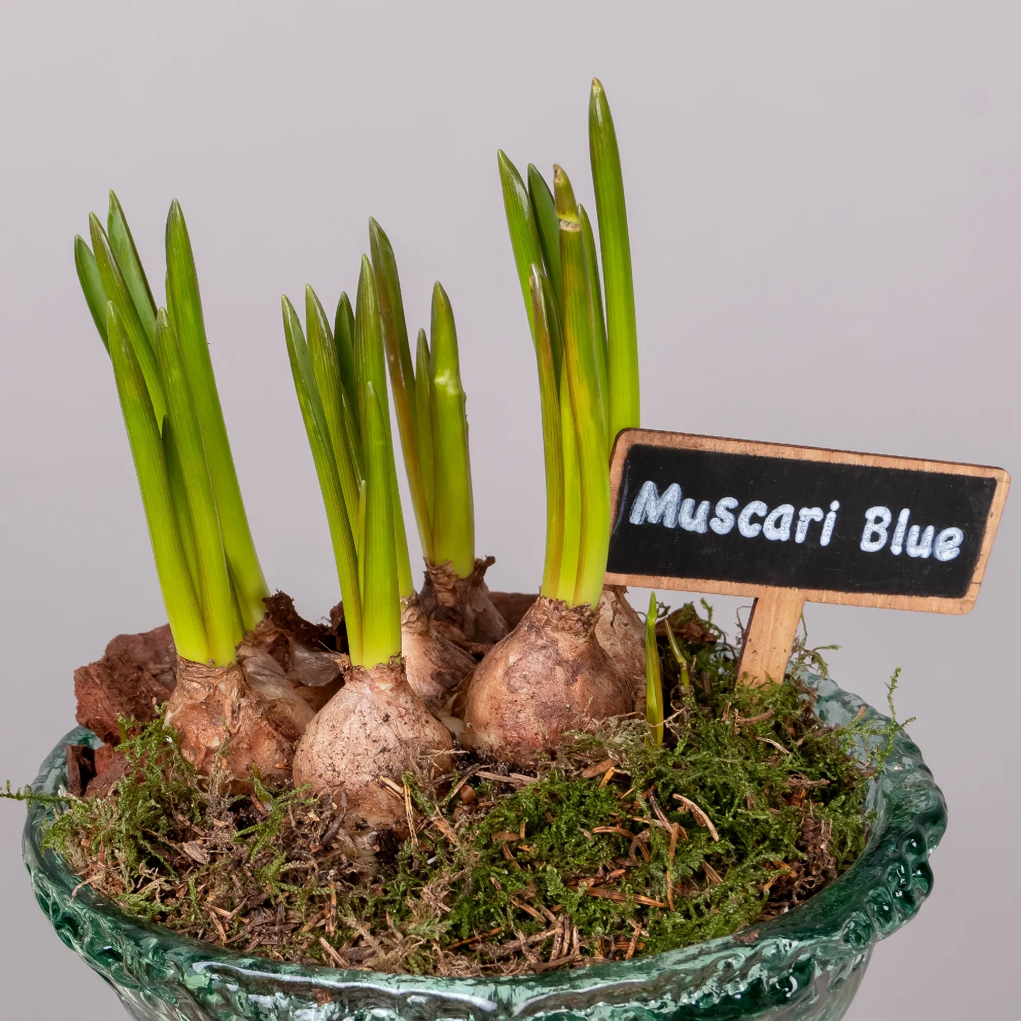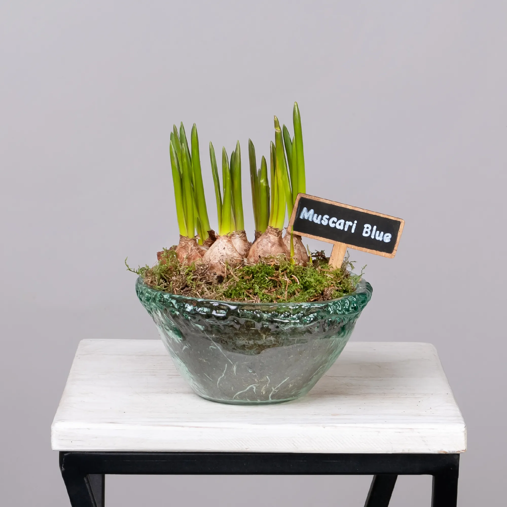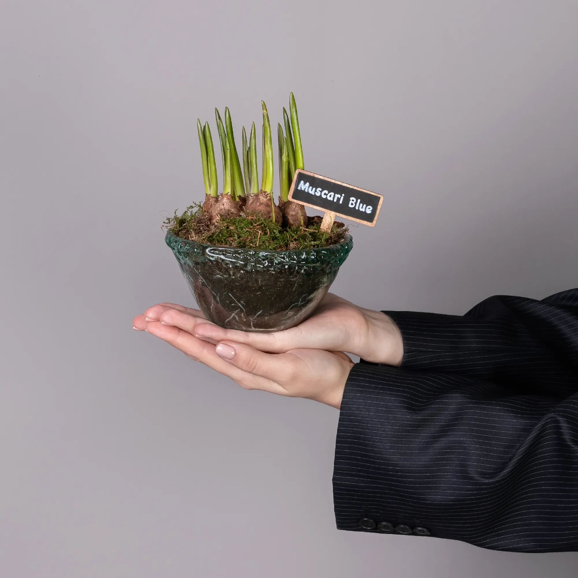 Мускари в зеленом стеклянном кашпо PTMB1003