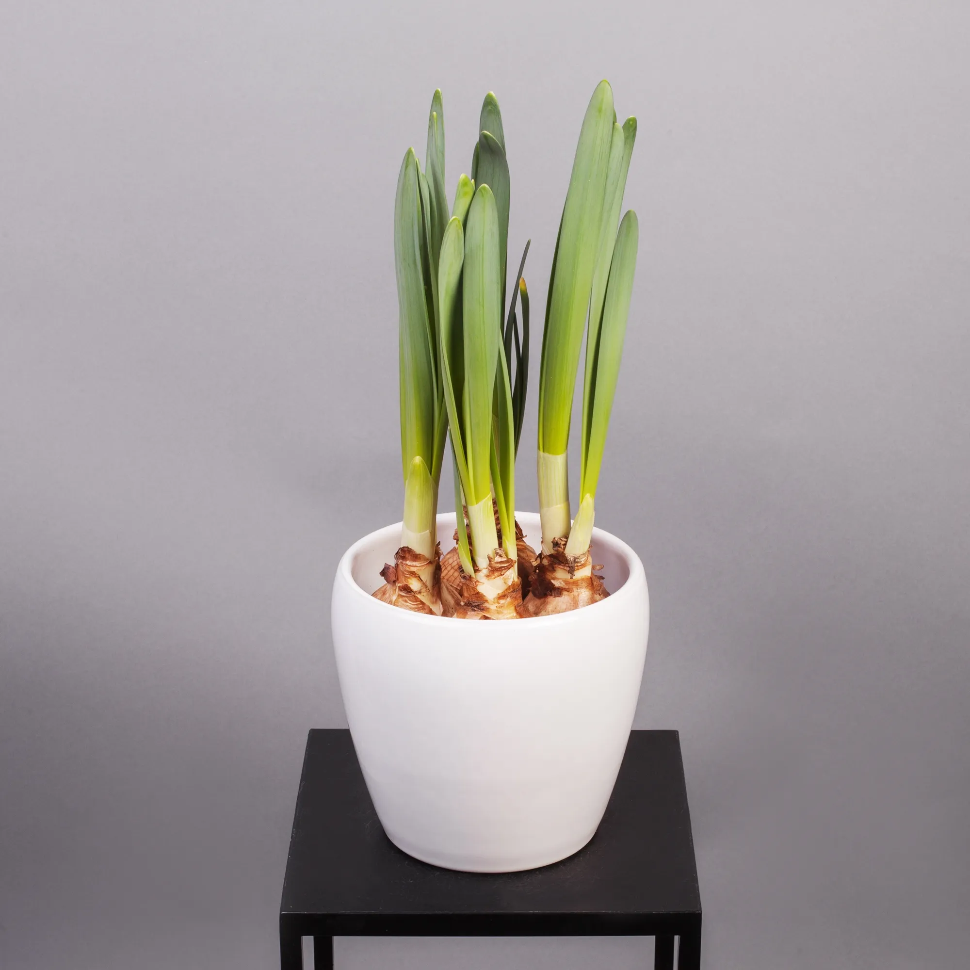Как правило, растения доставляются в техническом пластиковом горшке от поставщика. Если в наименовании указано «в керамике/цинке», то в эту стоимость входит декоративное кашпо.