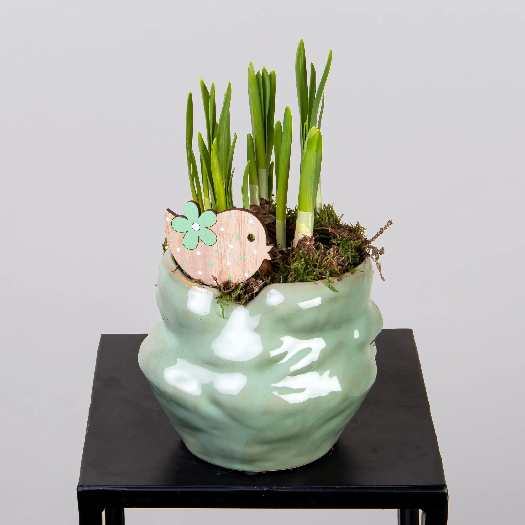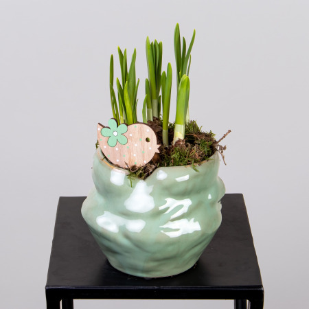 Как правило, растения доставляются в техническом пластиковом горшке от поставщика. Если в наименовании указано «в керамике/цинке», то в эту стоимость входит декоративное кашпо.
