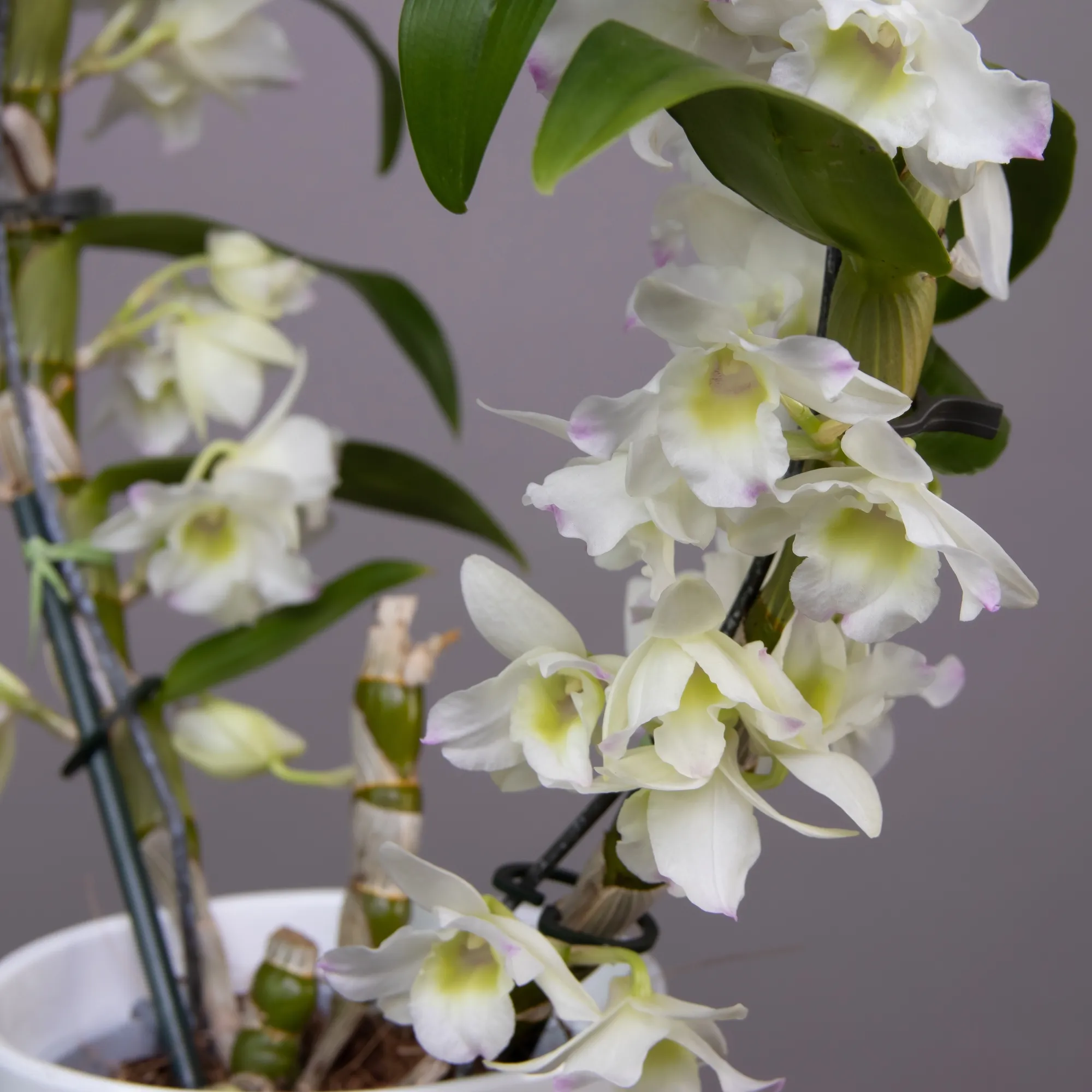 Как правило, растения доставляются в техническом пластиковом горшке от поставщика. Если в наименовании указано «в керамике/цинке», то в эту стоимость входит декоративное кашпо.