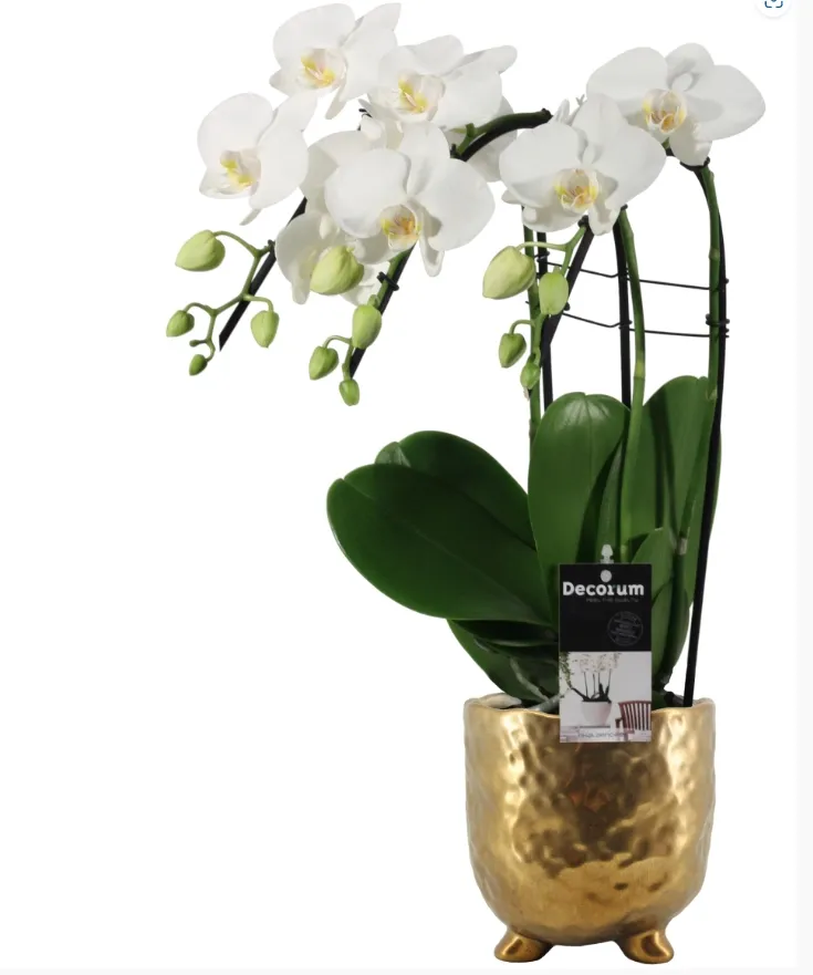 Фаленопсис Амбрелла белый в золотой керамике