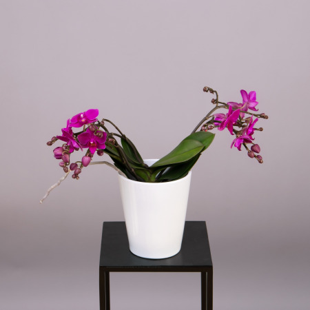 Как правило, растения доставляются в техническом пластиковом горшке от поставщика. Если в наименовании указано «в керамике/цинке», то в эту стоимость входит декоративное кашпо.