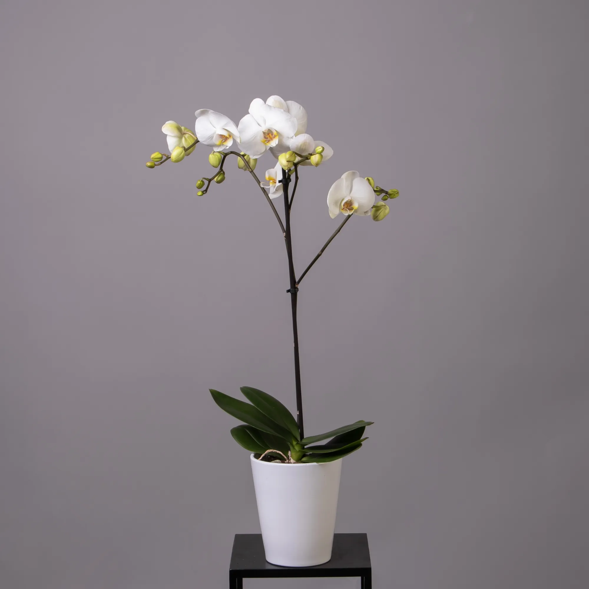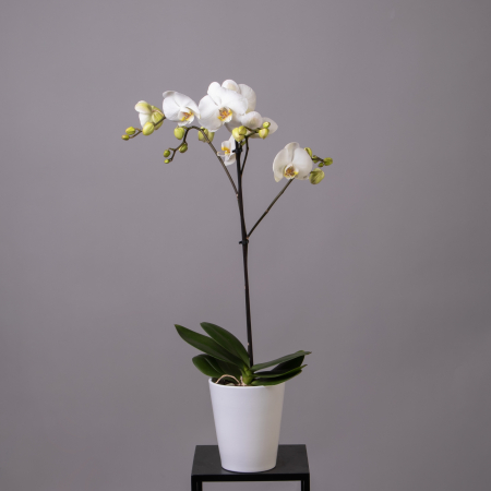 Как правило, растения доставляются в техническом пластиковом горшке от поставщика. Если в наименовании указано «в керамике/цинке», то в эту стоимость входит декоративное кашпо.